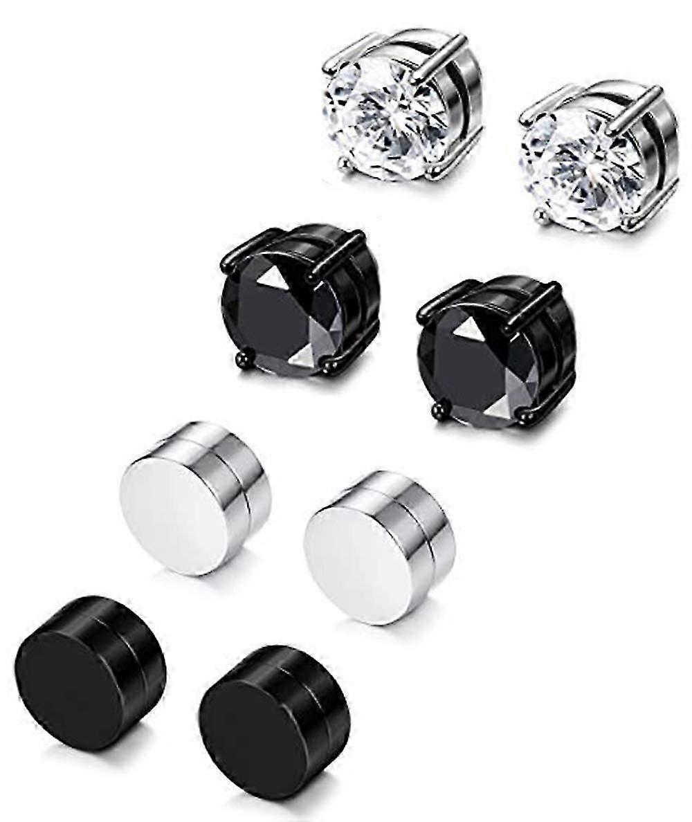 4 Pairs Stainless Steel Magnetic Stud Earrings for Men Women Non Piercing Clip on CZ Earrings 8MM