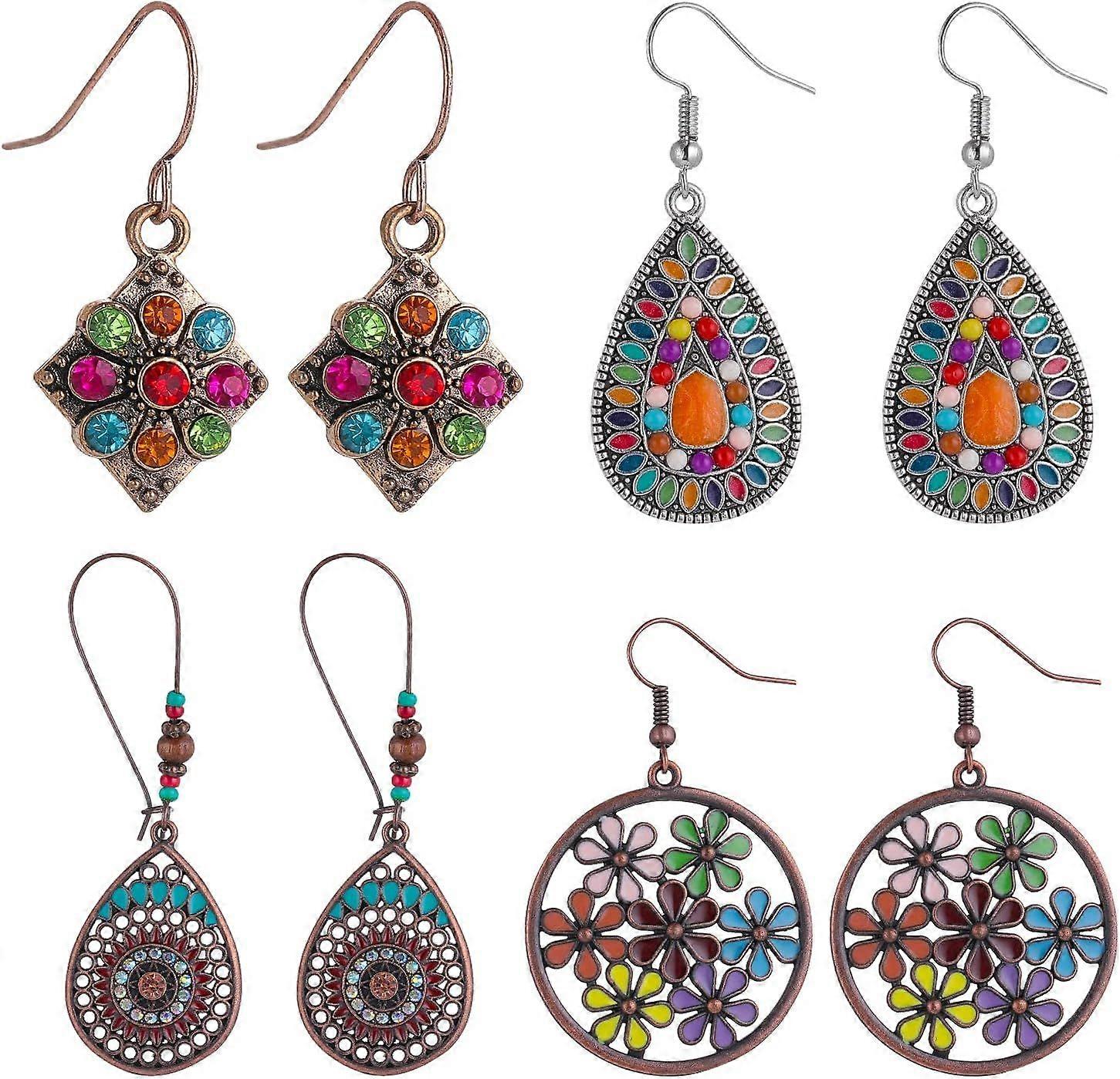 4 Pairs Bohemian Vintage Earrings Set Dangle Drop Earring Boho Statement Earrings Jewelry Accessories for Women Girl Supplies Product description Bohemian Vintage Earrings Set Dangle Drop