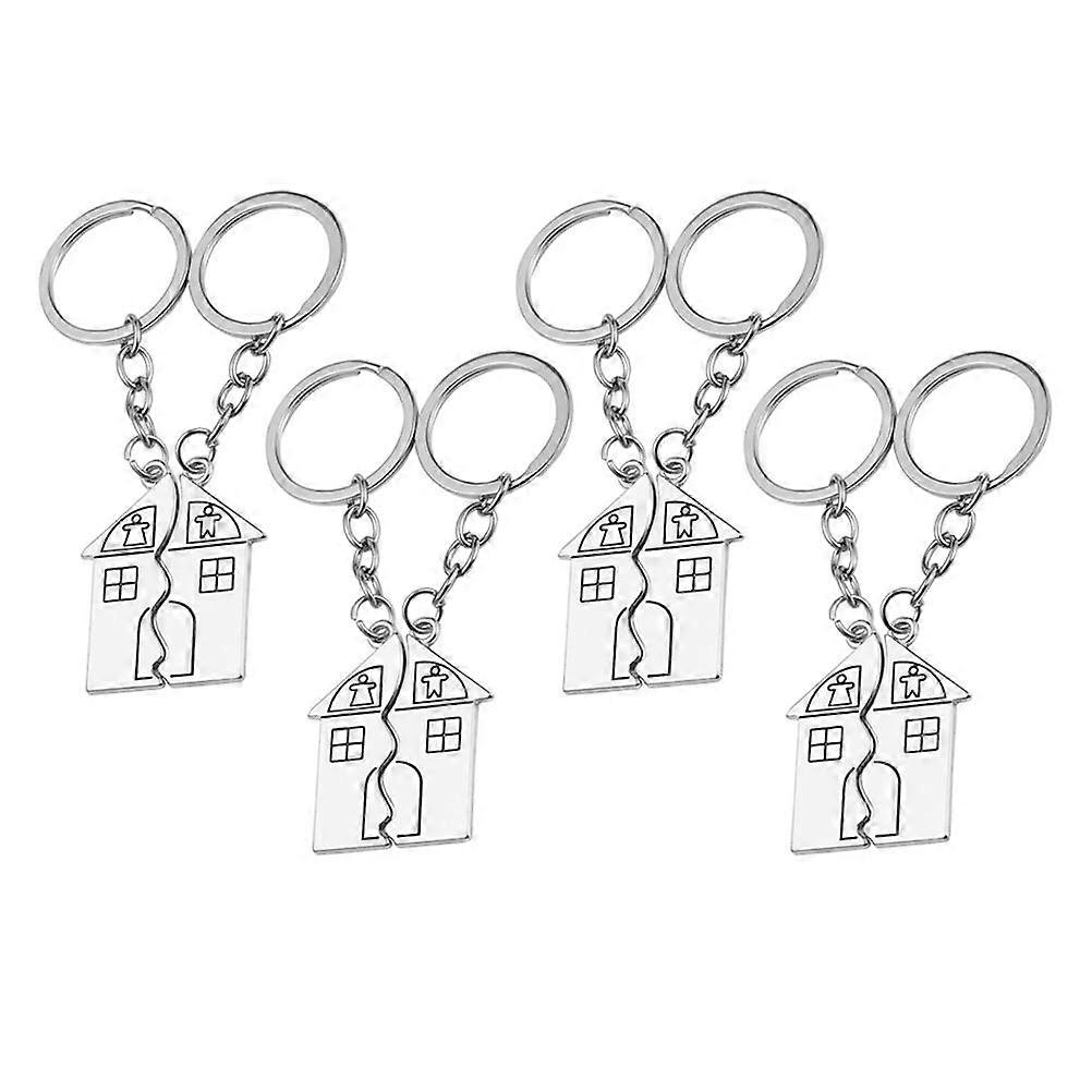 4 Pairs Mini House Couple Key Ring Pendants Unique House Hanging Keychain Pendant