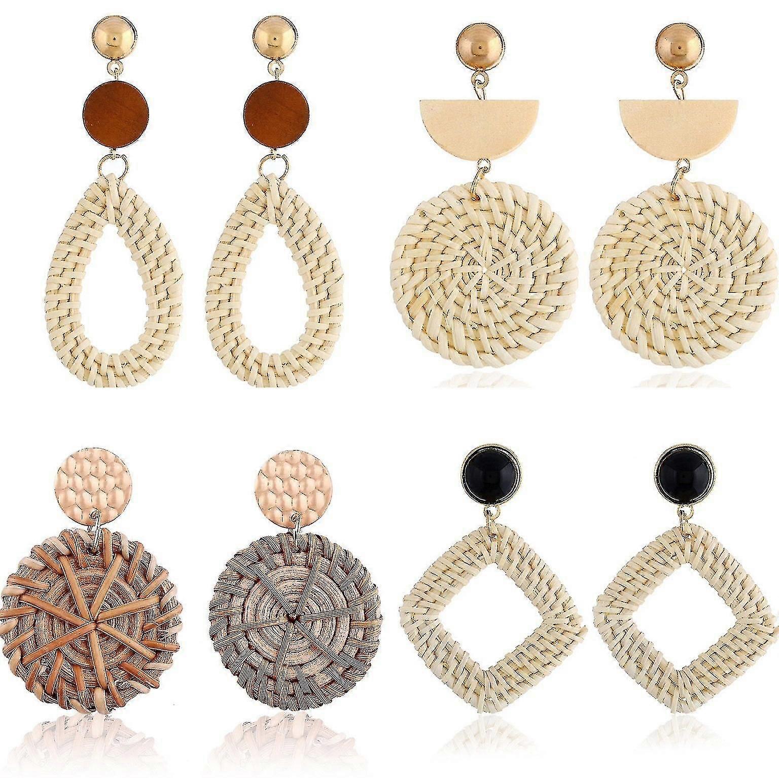 4 Pairs Rattan Earrings Straw Earrings Tassel Woven Bohemian Earring Handmade Wicker Braid Hoop Drop Earring For Women Girls