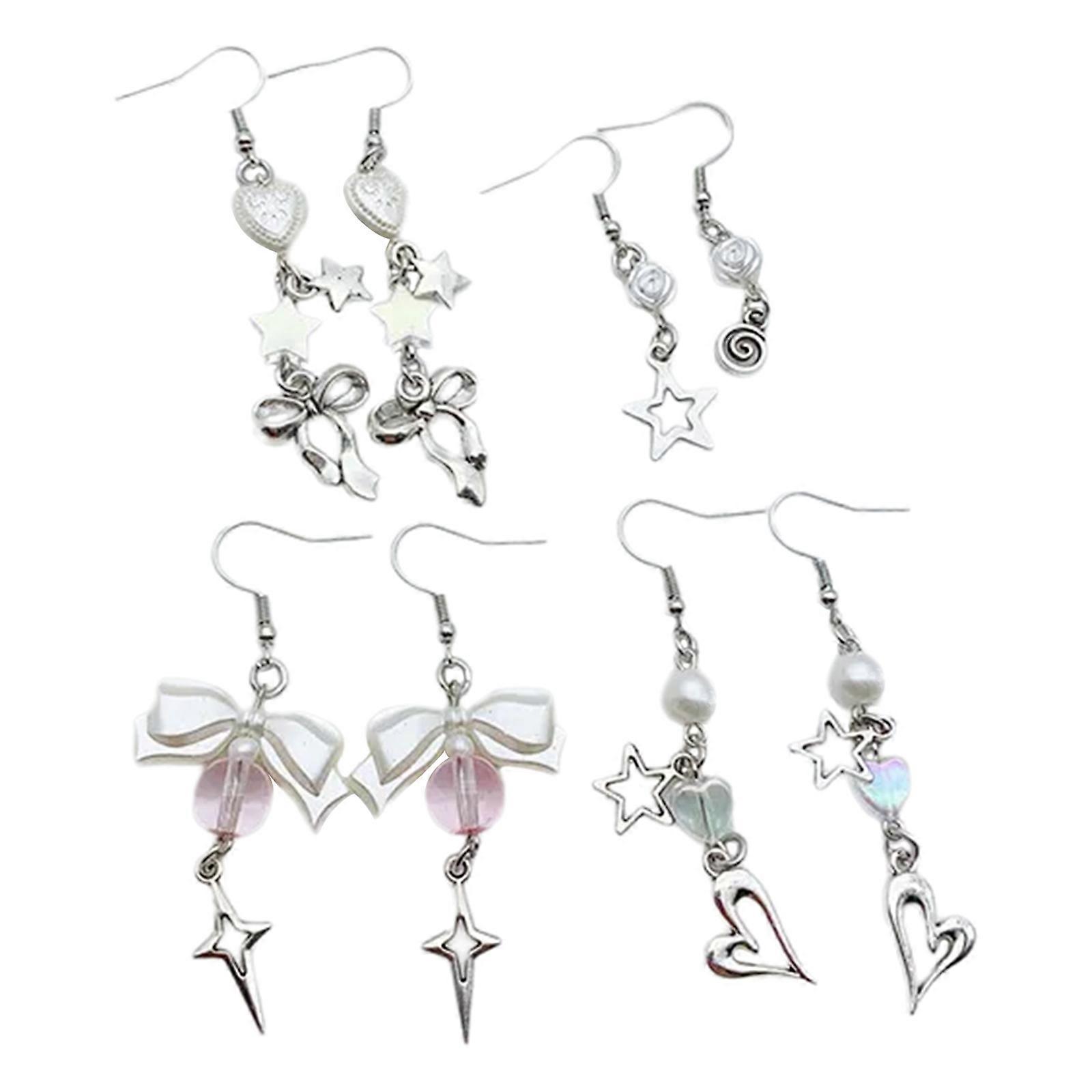4 Pairs Bowknot/Star/Heart Ear Drop Colorful Dangle Earrings Fashionable Ear Pendants Stylish Decorations Party Jewelry