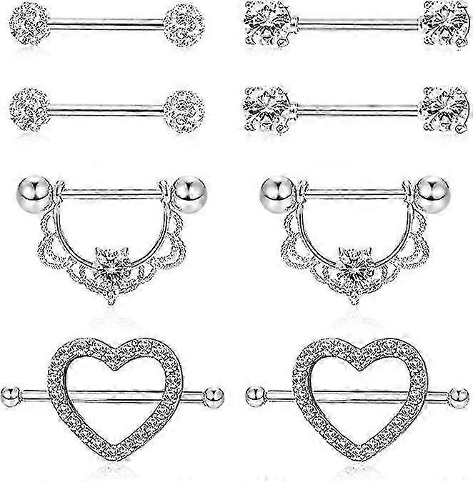 4 Pairs 14g Stainless Steel Nipplerings Nipple Tongue Rings Opal Barbell Body Piercing Jewelry