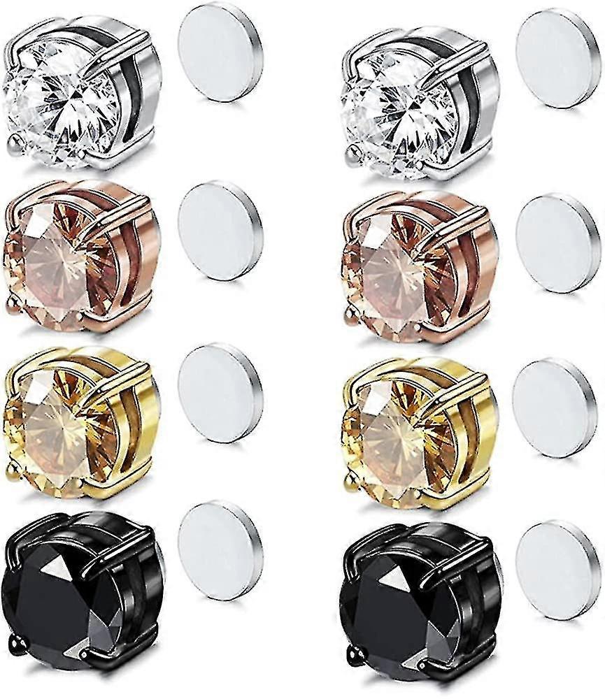 4 Pairs 6 Mm Magnetic Earrings For Women Cubic Zirconia Magnet Earrings For Men Stainless Steel Clip On Earrings