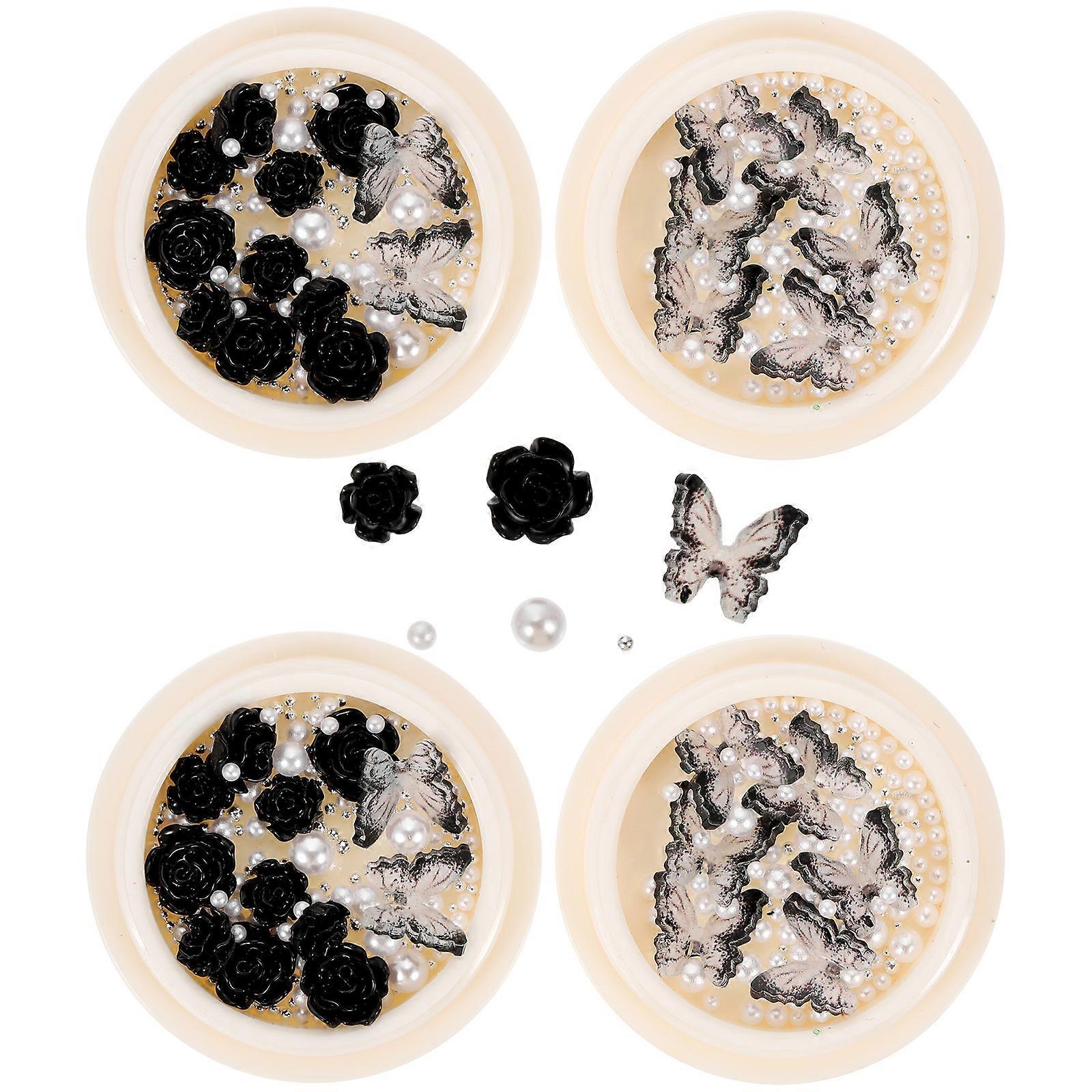 4 Boxes Nail Charms Nail Pearls Rhinestones Flower Nail Art Charms Nail Decors
