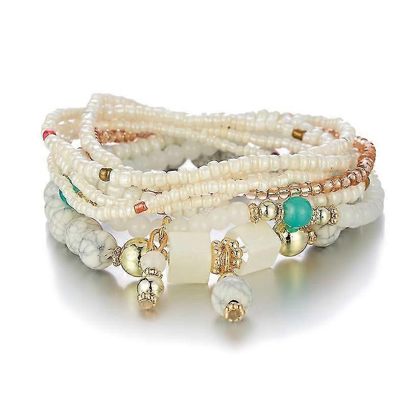 Set Of 4 Bohemian Stretch Beaded Bracelets - Women's Turquoise Beads, Stackable Bracelet Set Multi-coloured Jewelry