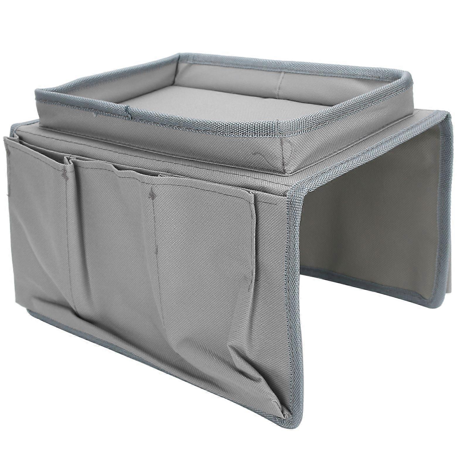 4 Pockets Sofa Armrest TV Remote Control Organizer Armchair Couch Bag with Cup Holder Tray Gray