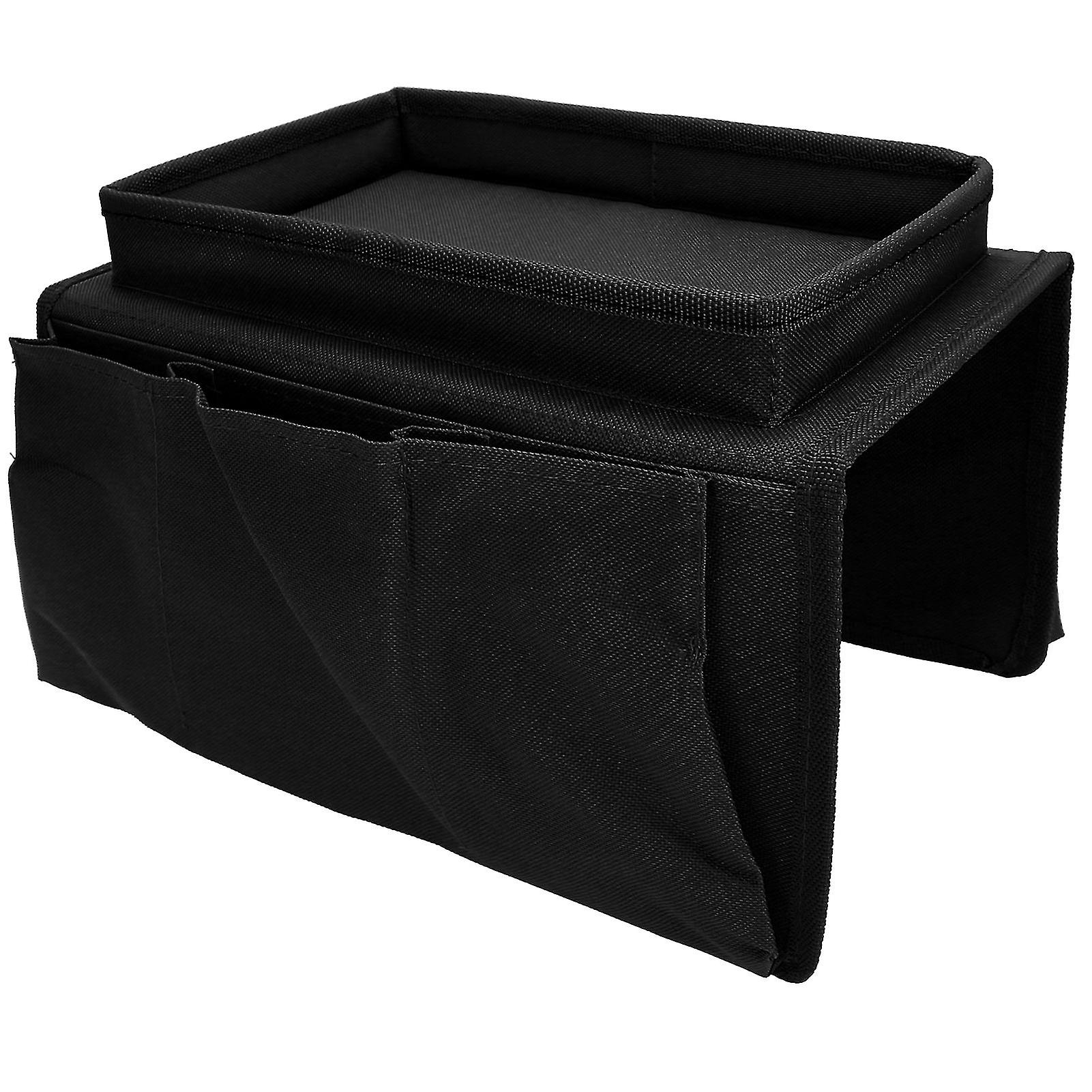 4 Pockets Sofa Armrest TV Remote Control Organizer Armchair Couch Bag with Cup Holder TrayBlack