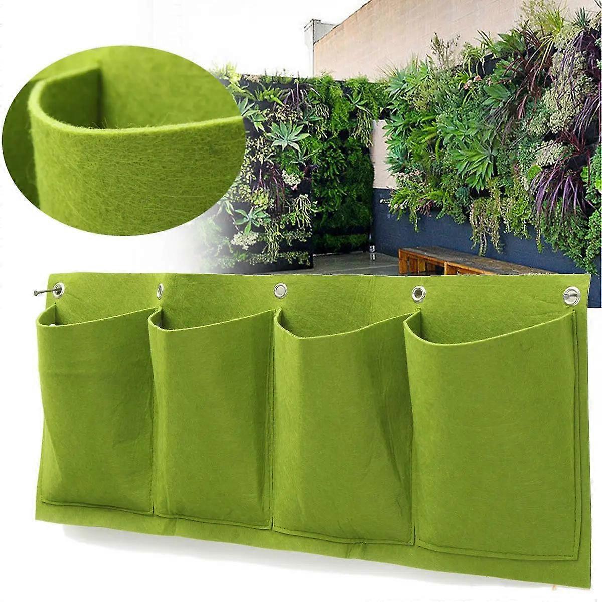 4 Pockets Outdoor Indoor Wall Mount Garden Hanging Aeration Planter Grow Bag