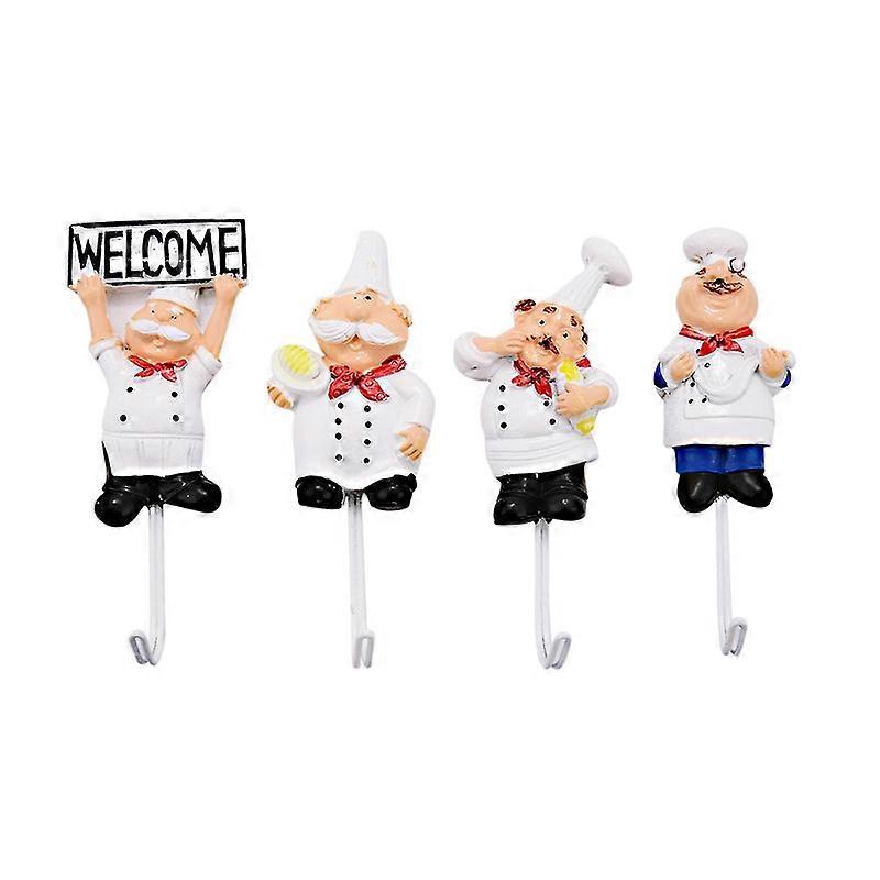 Pack of 4 Resin French Chef Figurine Wall Hooks Decorative Wall Mount Rack Hook Hanger(Assorted Sty