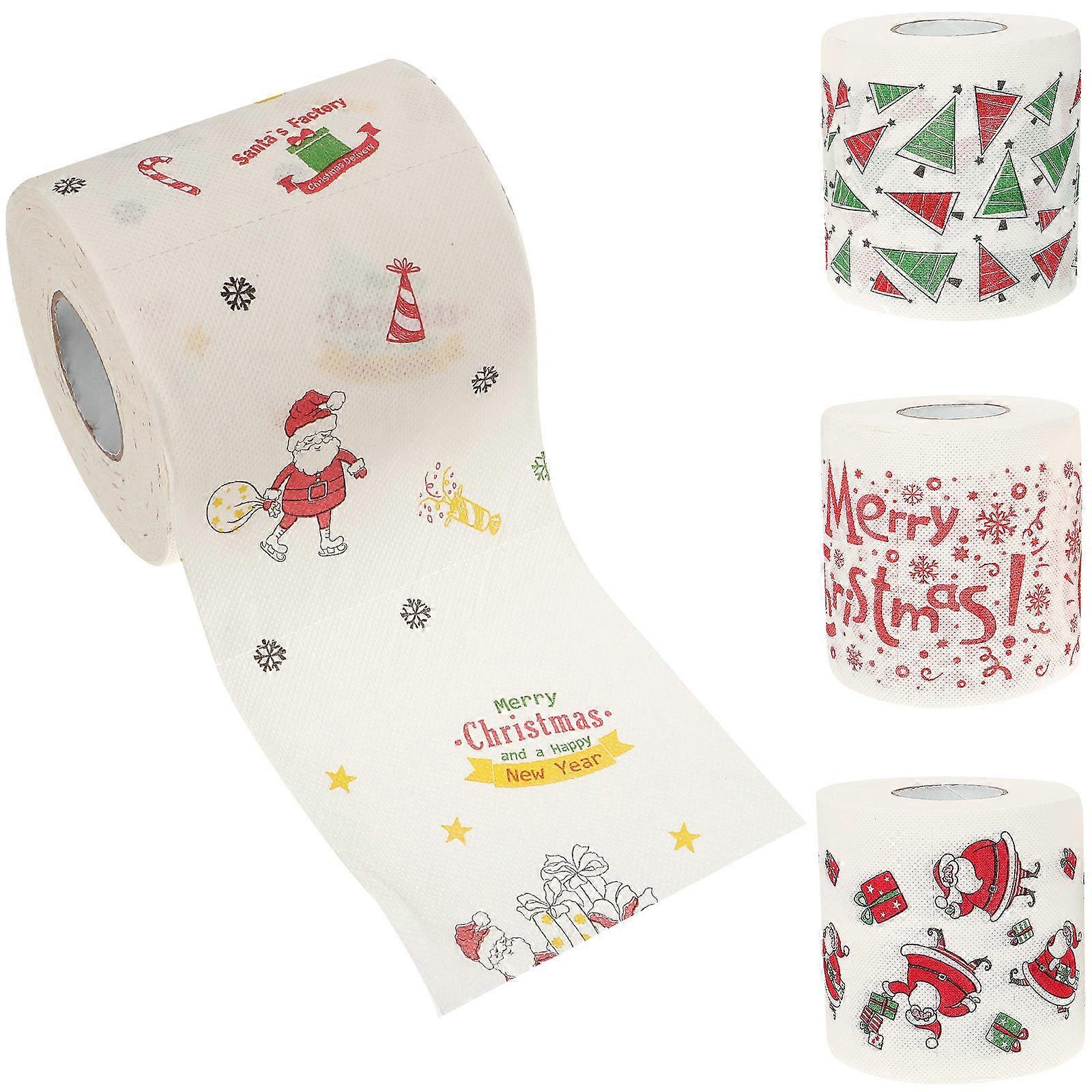4 Rolls Christmas Patterned Toilet Paper, Soft Disposable Tissue for Holiday Season, Festive Household Paper Supplies, Creative Holiday Decor Napkins
