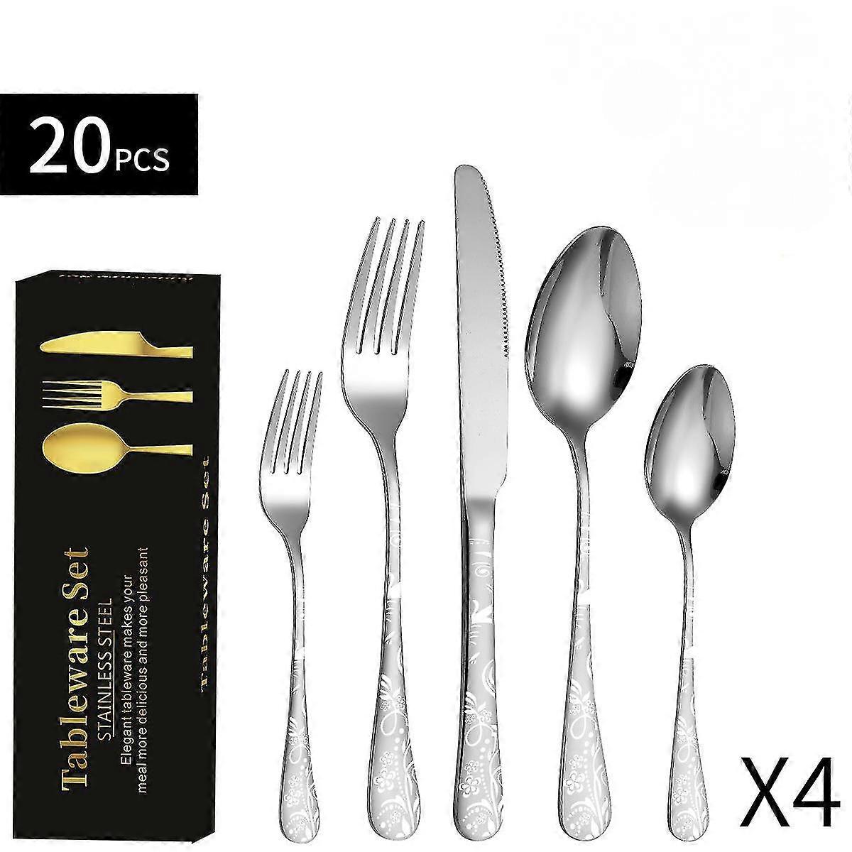 20-Piece Cutlery Set for 4 Individuals, Featuring Knife, Fork, Spoon, Made of Mirror-Polished Stainless Steel, Dishwasher-Safe, Suitable for