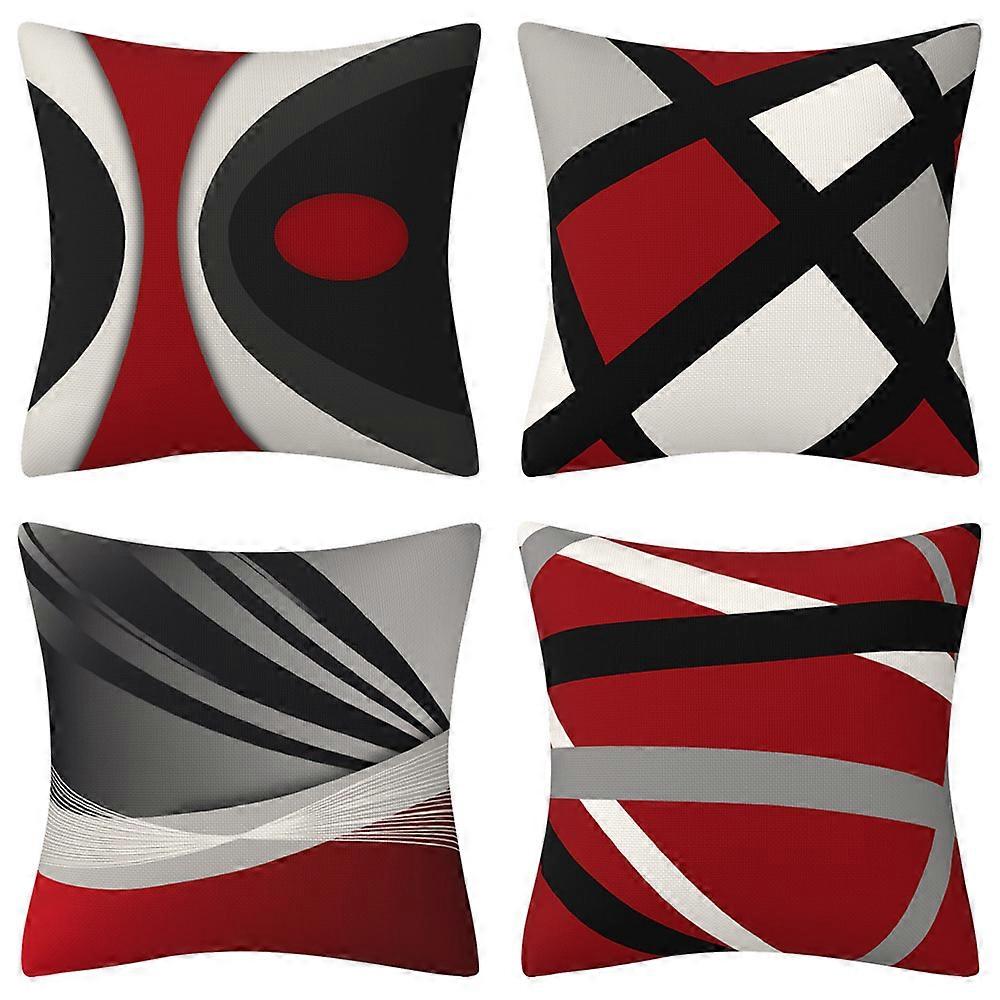4pcs, cushion covers, stripes, 45 x 45 cm, red and gray