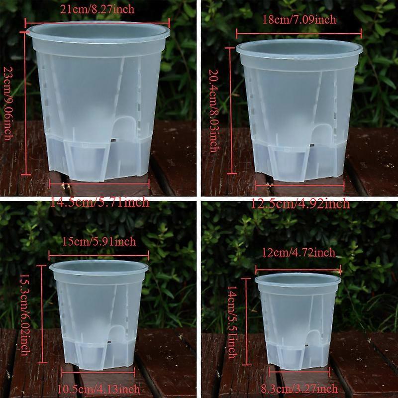 4 Pcs Classic Round Self-Watering Plant Pots with Drainage Holes, Resin Indoor & Outdoor Garden Planter for Orchids & Other Plants, Transparent White