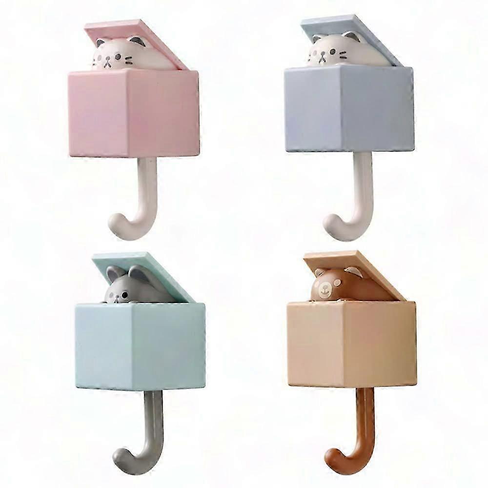4pcs Cute Cat Coat Hooks, Waterproof Self-Adhesive Wall Hooks for Kids, Creative Key Holder & Towel Hanger, Pet-Friendly Home Decor