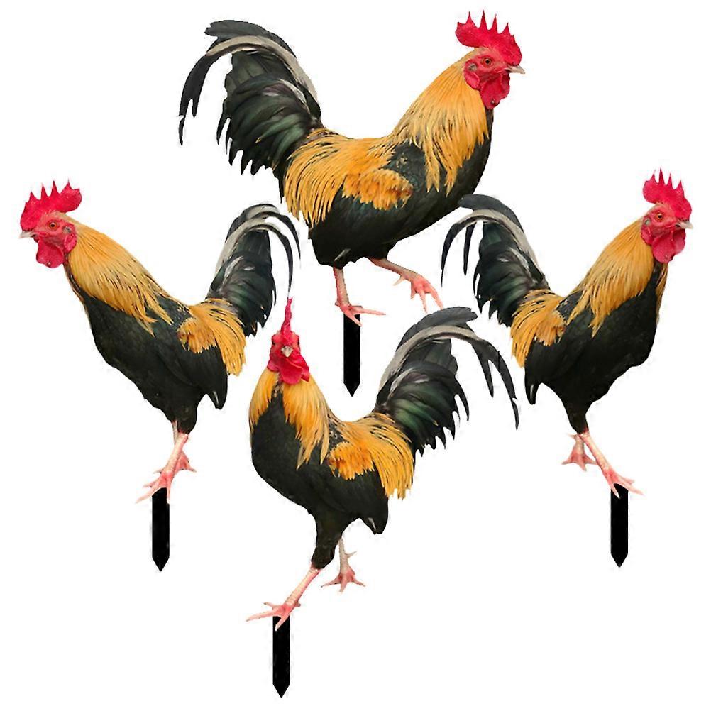 4pcs Acrylic Rooster Garden Stakes Realistic Outdoor Lawn Ornament for Courtyards & Flower Pots Decoration