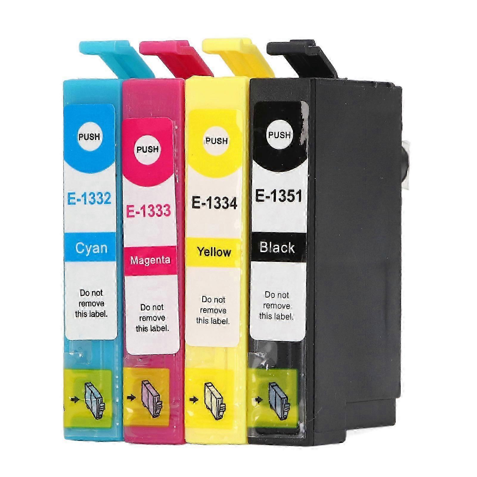 4 Pcs Ink Cartridge Black Cyan Magenta Yellow Smoothly Accurate Clear Anti Fade Printer Ink Cartridge for Stylus T1351 T1332 T1333 T1334