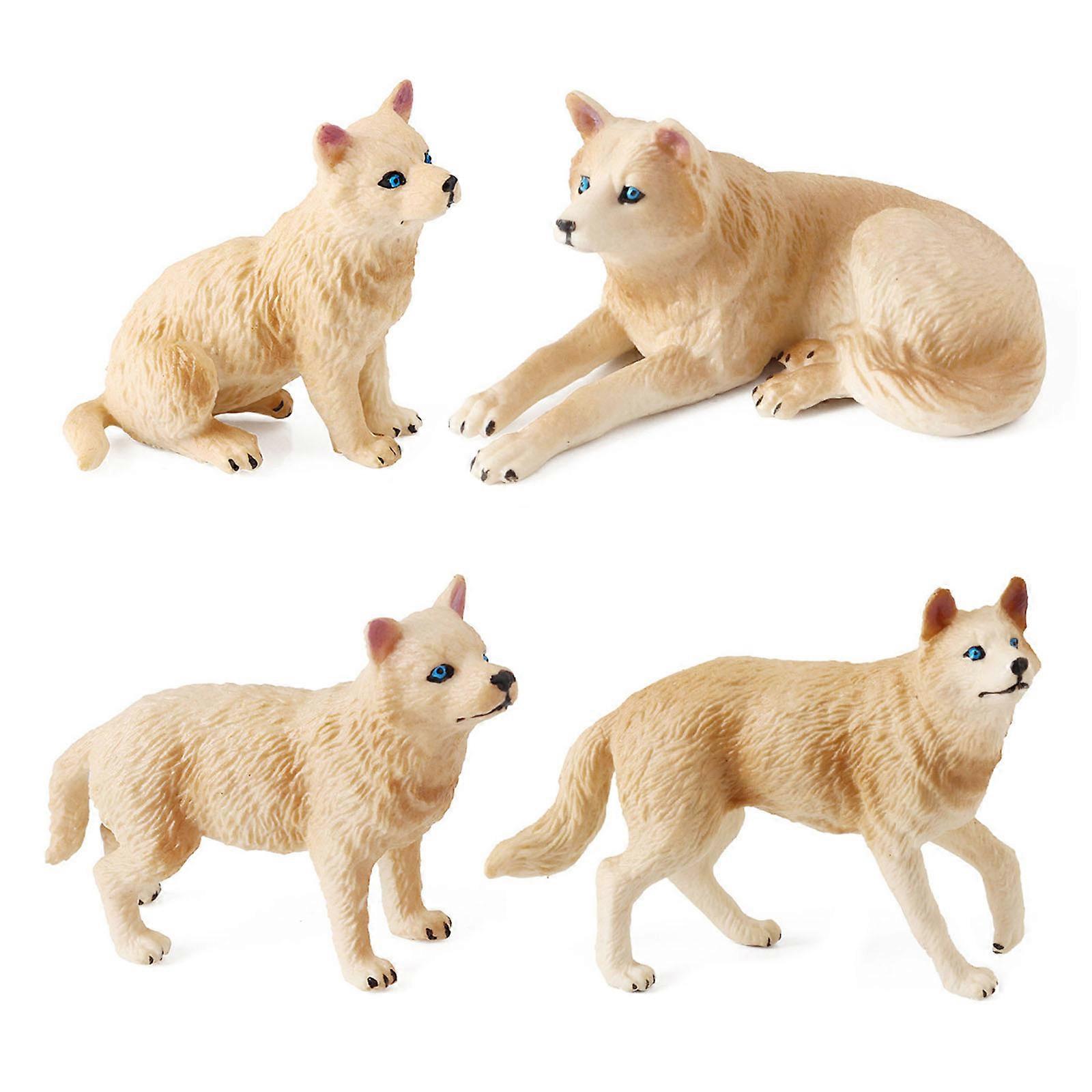 4Pcs Wolf Figurines Realistic Plastic Jungle Animal Model Figures for Early Educational Toy Birthday Party Gift for Kids White