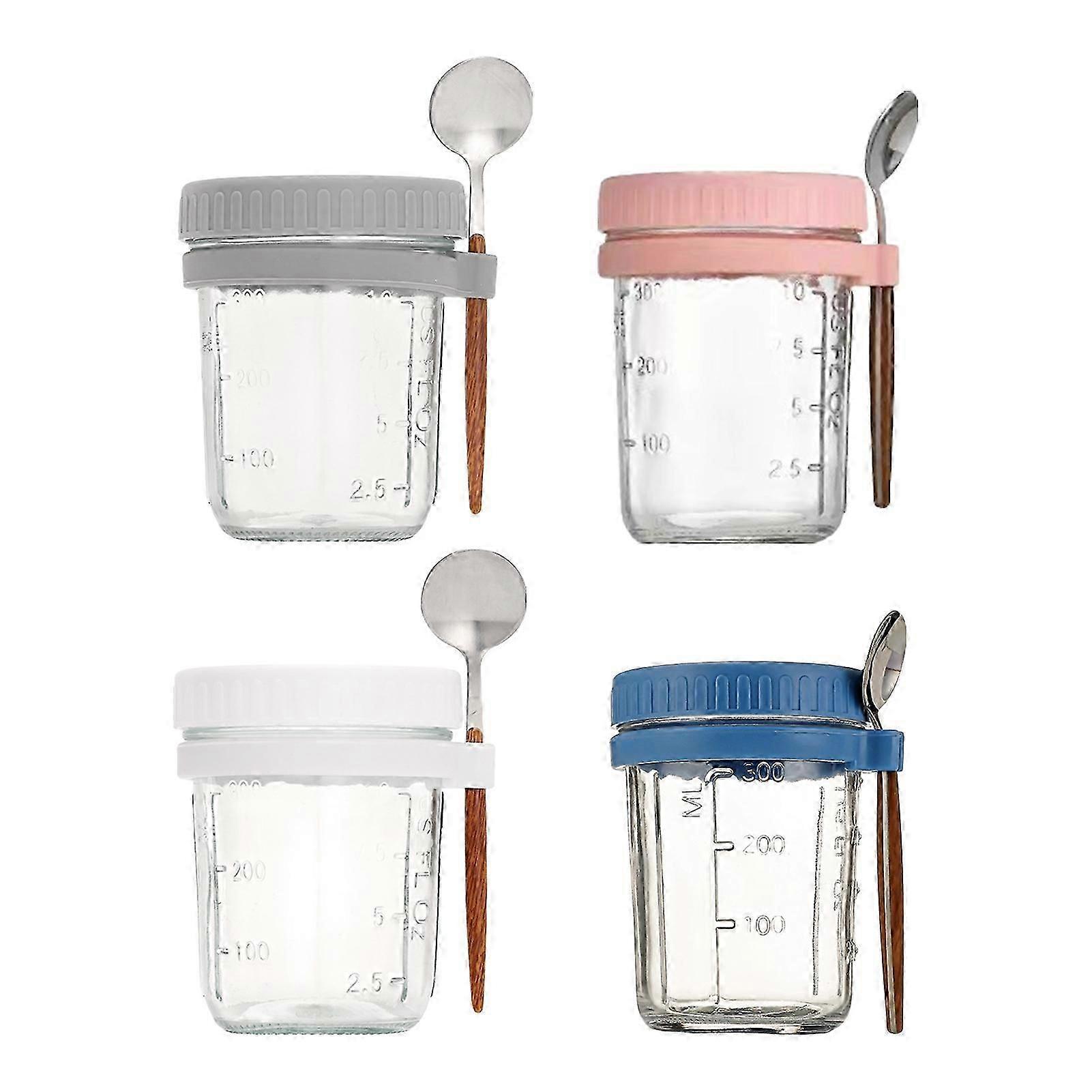 4pcs Glass Mason Cup Overnight Oats Containers With Lids And Spoons Airtight Jars For Milk Cereal Fruit Salads Yogurt