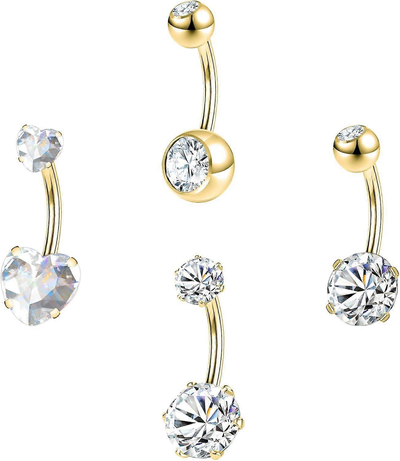 4pcs Cubic Zircon Belly Button Ring, 14G Stainless Steel Belly Ring, Long Bar