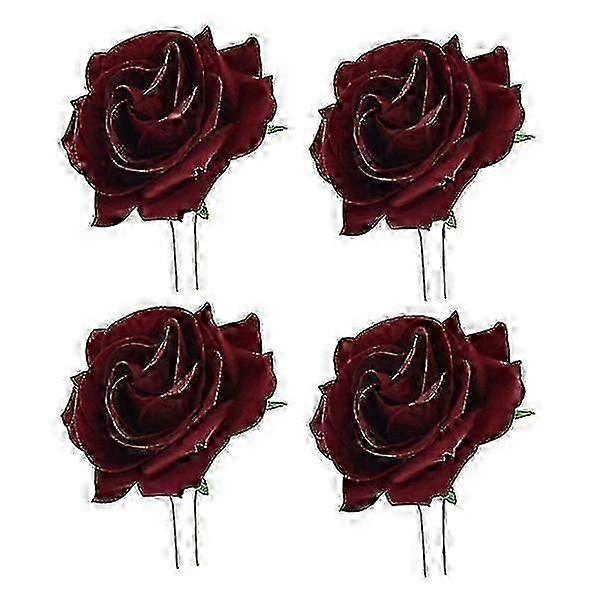 4pcs Claret Flower Rose Hair Clips - Elegant U Shaped Hairpins for Parties