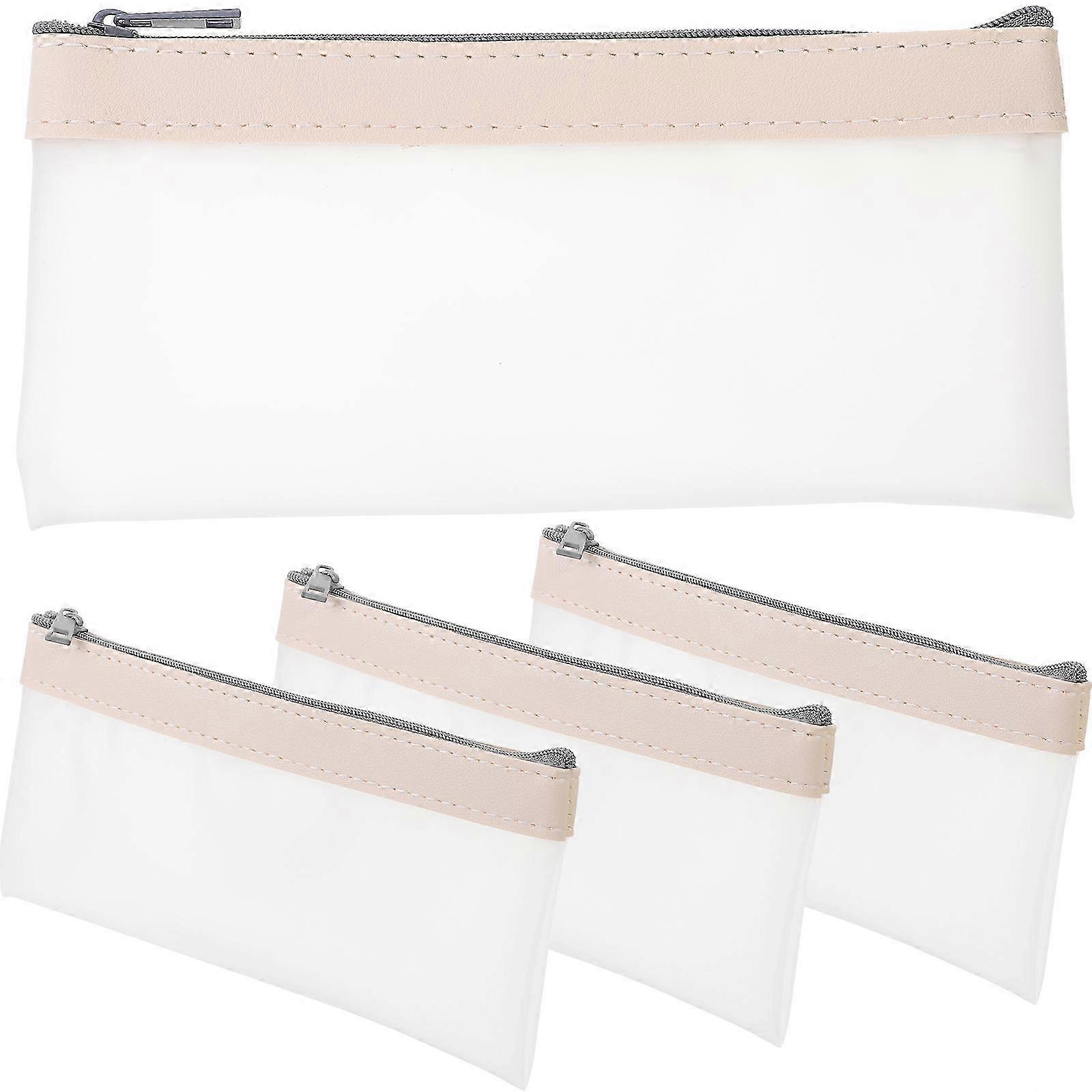 4Pcs Clear Pen Case Multi-use Stationery Bag Large Transparent Pouch 18.5X10X1CM Beige