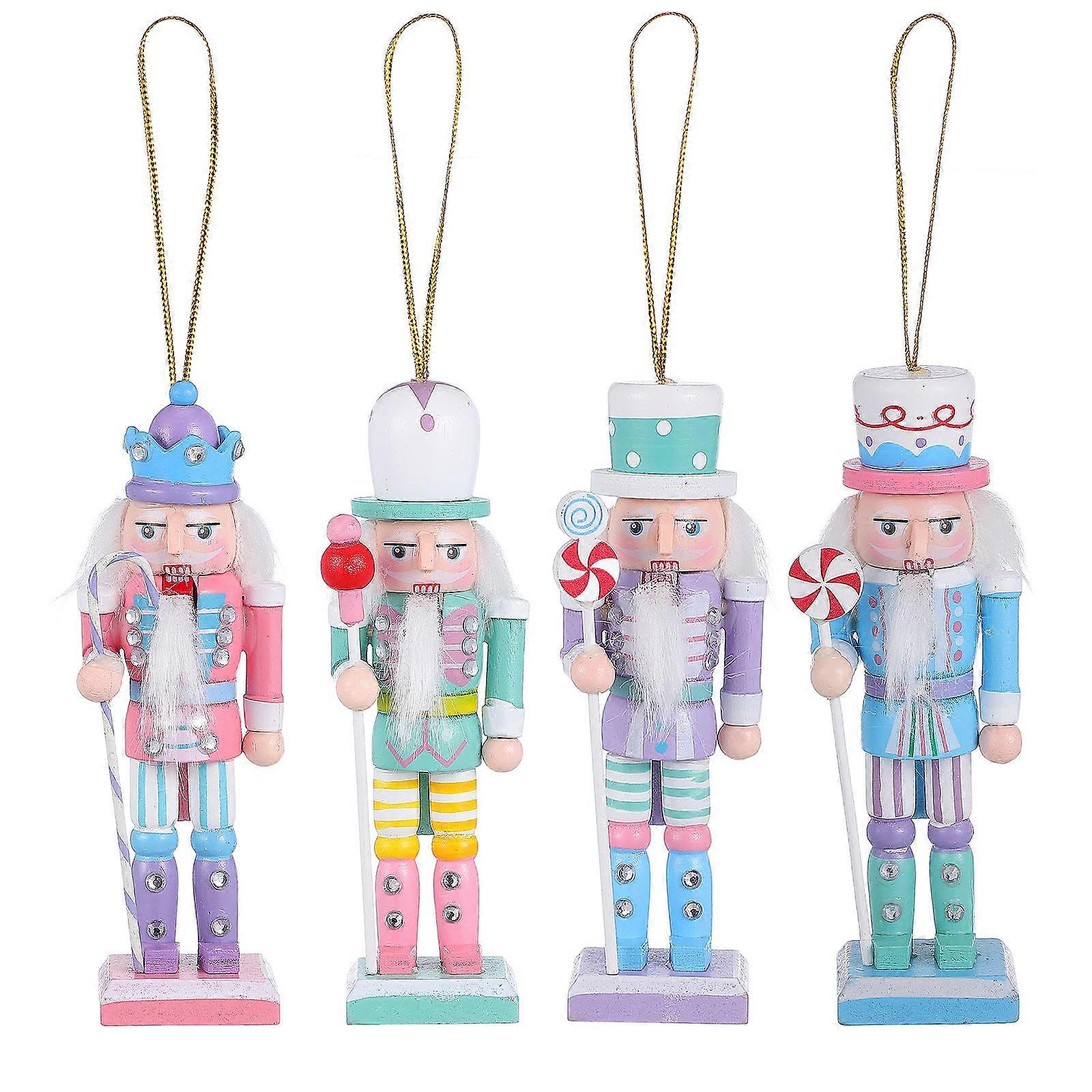 4pcs Christmas Nutcracker Soldier Ornaments Festive Xmas Hanging Decorative Figurines for Tree, Shelves, Holiday Display Blush Color