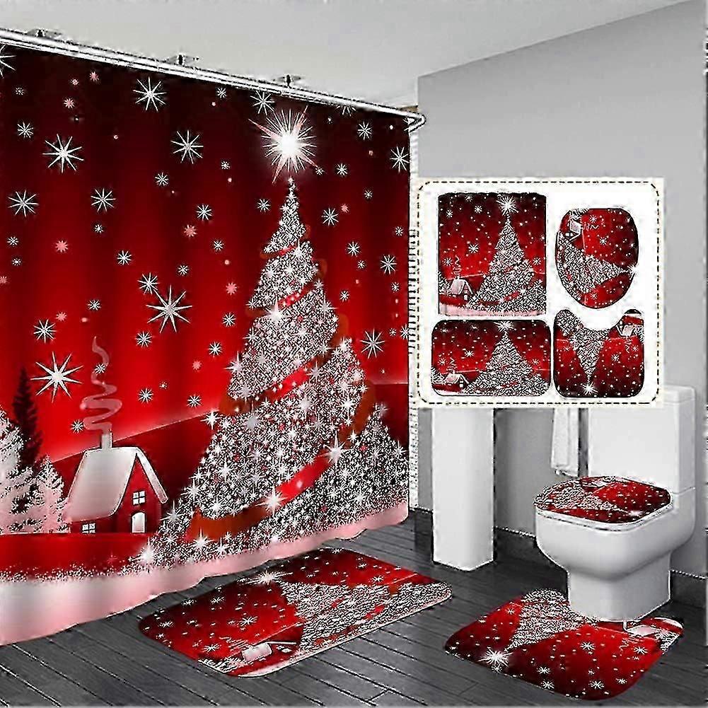 4 Pcs Christmas Shower Curtain Set With Bath Mat,rugs And Toilet Mat For Bathroom