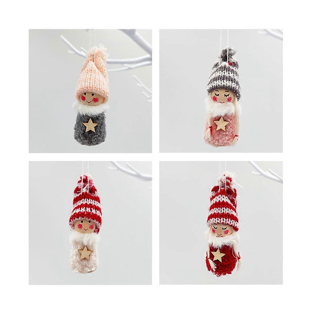 4Pcs Christmas Tree Ornaments Cute Cartoon Knitted Plush Angel Boys Girls Hanging for Doll Mini Toys Pendant Xmas Holiday Party Decoration Gifts