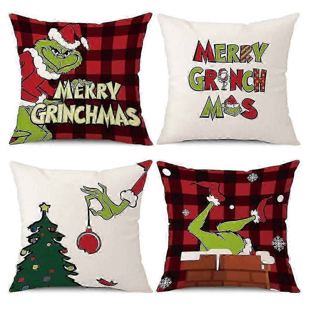 4pcs Christmas Linen Pillow Cases, Christmas Decorations