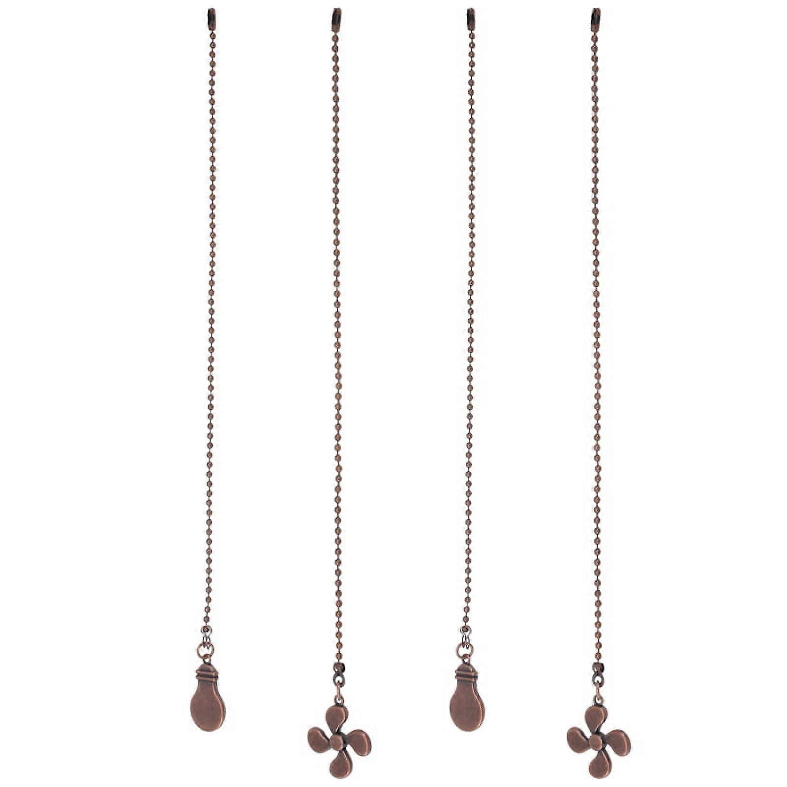 4Pcs Ceiling Fan Pull Chain Set,Bulb and Fan Pattern Pull Chain Extension Fan Pull Chain Pendant 12 Inch (Red Bronze)