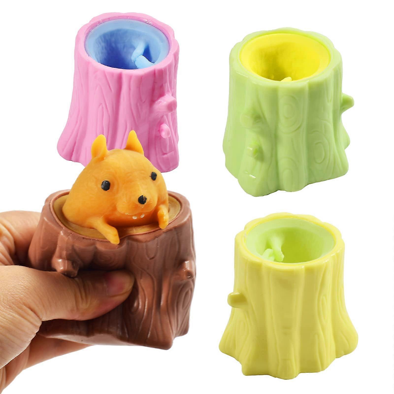 4 Pcs Squeeze Toys Children's Squirrel Cup Stumps Relief Sensory Stumps Fidget Toys Decompression Tree