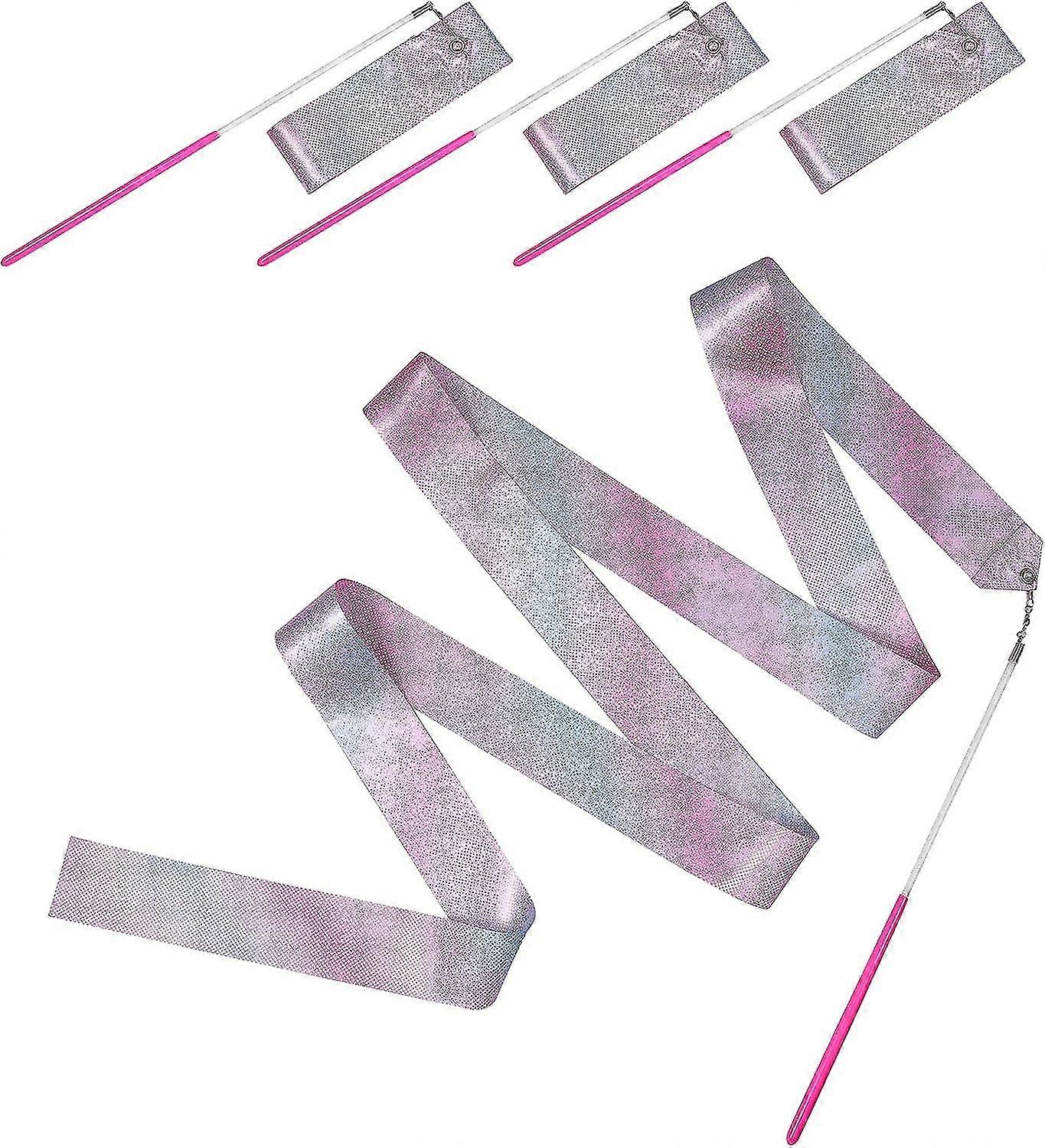 4 Pcs Dance Ribbons, Sparkling Pink Gymnastics Ribbon Wand Rhythmic Dance Ribbons, Dancers Ribbon Streamers Dancing Equipment For Gymnastics Birthday