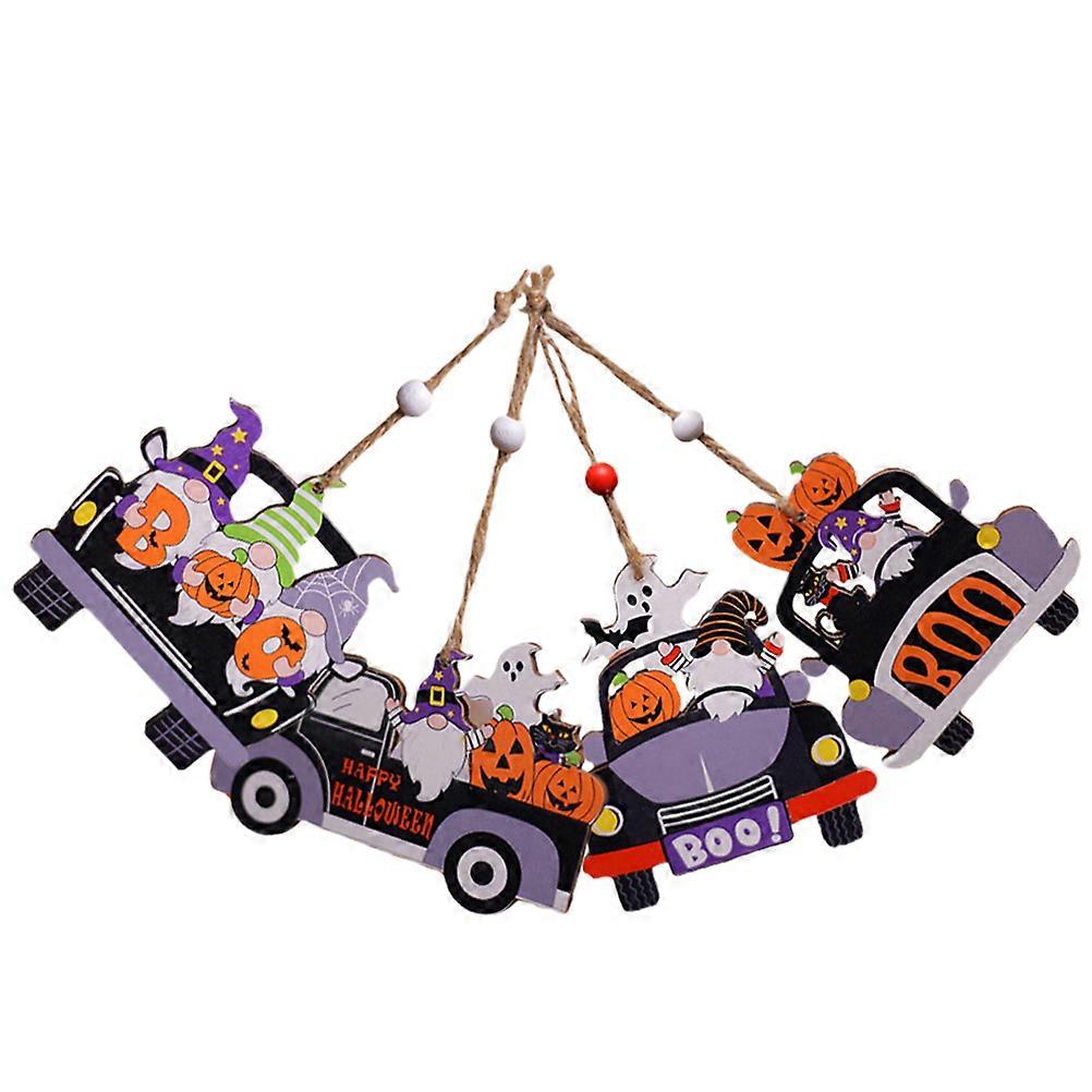 4pcs Halloween Wooden Car Hanging Ornaments Creative Wood Decor for Spooky Atmosphere, Party Favors & Versatile Home and Shop Decor
