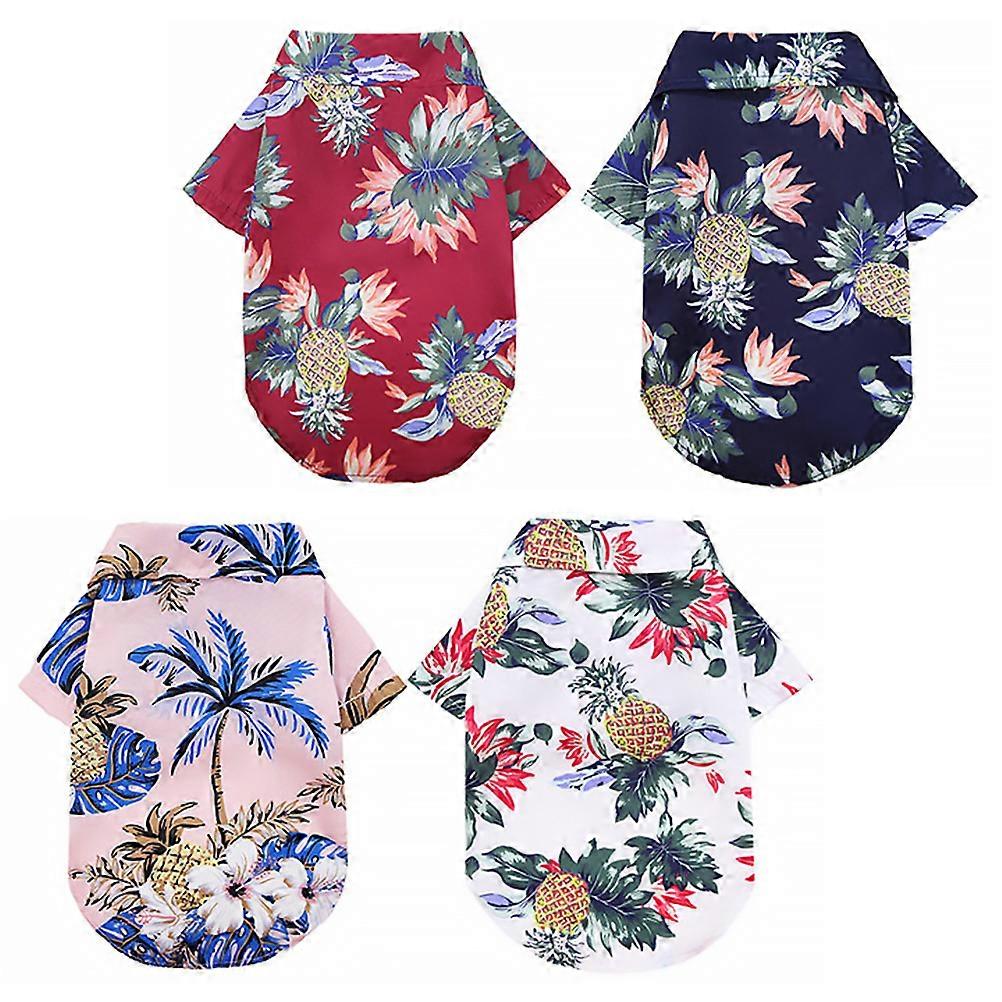 4pcs Hawaiian Dog Shirt Summer Breathable Lightweight Pet Clothes Casual Puppy Apparel Button Closure Comfy Tropical Print Outfits