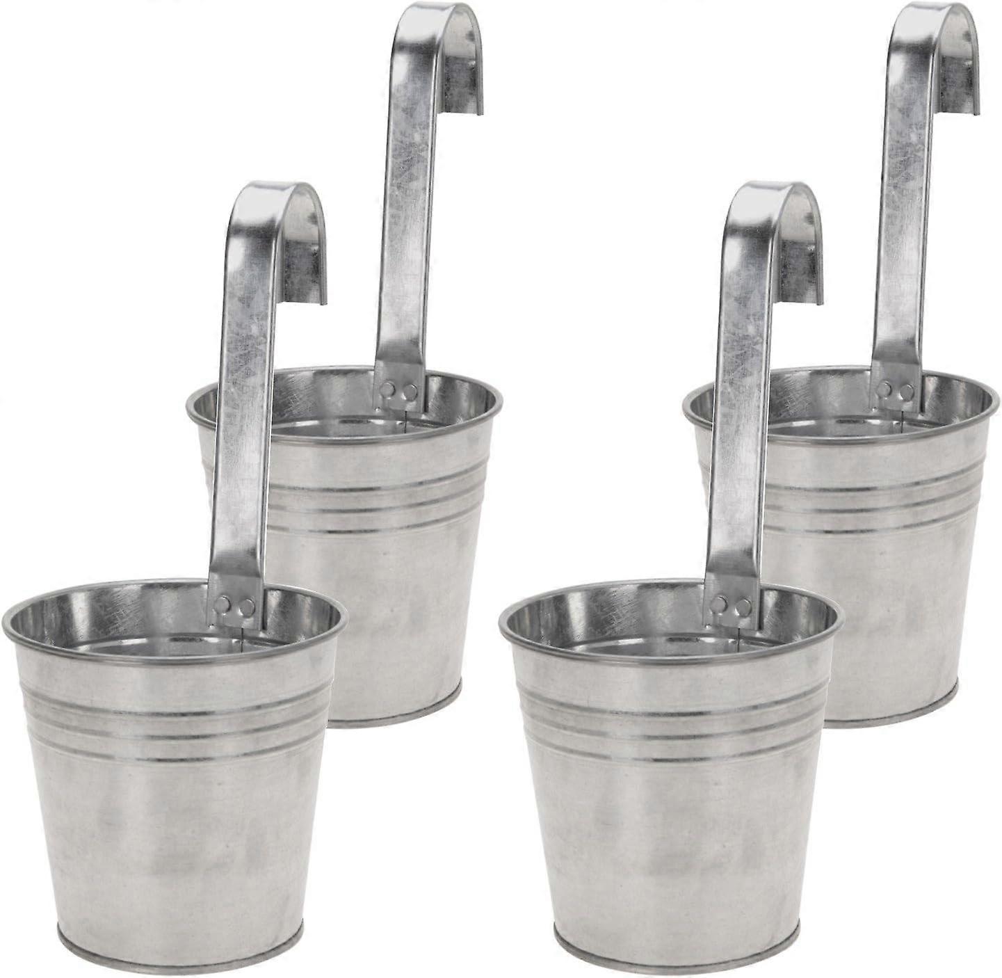 Product descriptionPackage content: 4 * balcony hanging basins1. In spring, present your flowers, herbs or plants in these galvanized flower pots with practical handles for hanging on the fence, railing or pallet.2. The hanging flower pots equipped with your favorite flowers, herbs or plants are ideal for brightening up garden fences or sheds.3. The hanging pots are made of galvanized metal and have no drainage hole in the bottom. This can be drilled in with little effort if required.4. Dimensions of the hanging flower pots: approx. 18.8 cm (with handle) - approx. 10.8 cm (without handle). The handles are suitable for balcony railings with a width of up to a maximum of 6 cm.5. Beautiful hanging flower pots in silver for the kitchen (herbs), garden (garden fence decoration) or as a practical planter with hooks for hanging.
