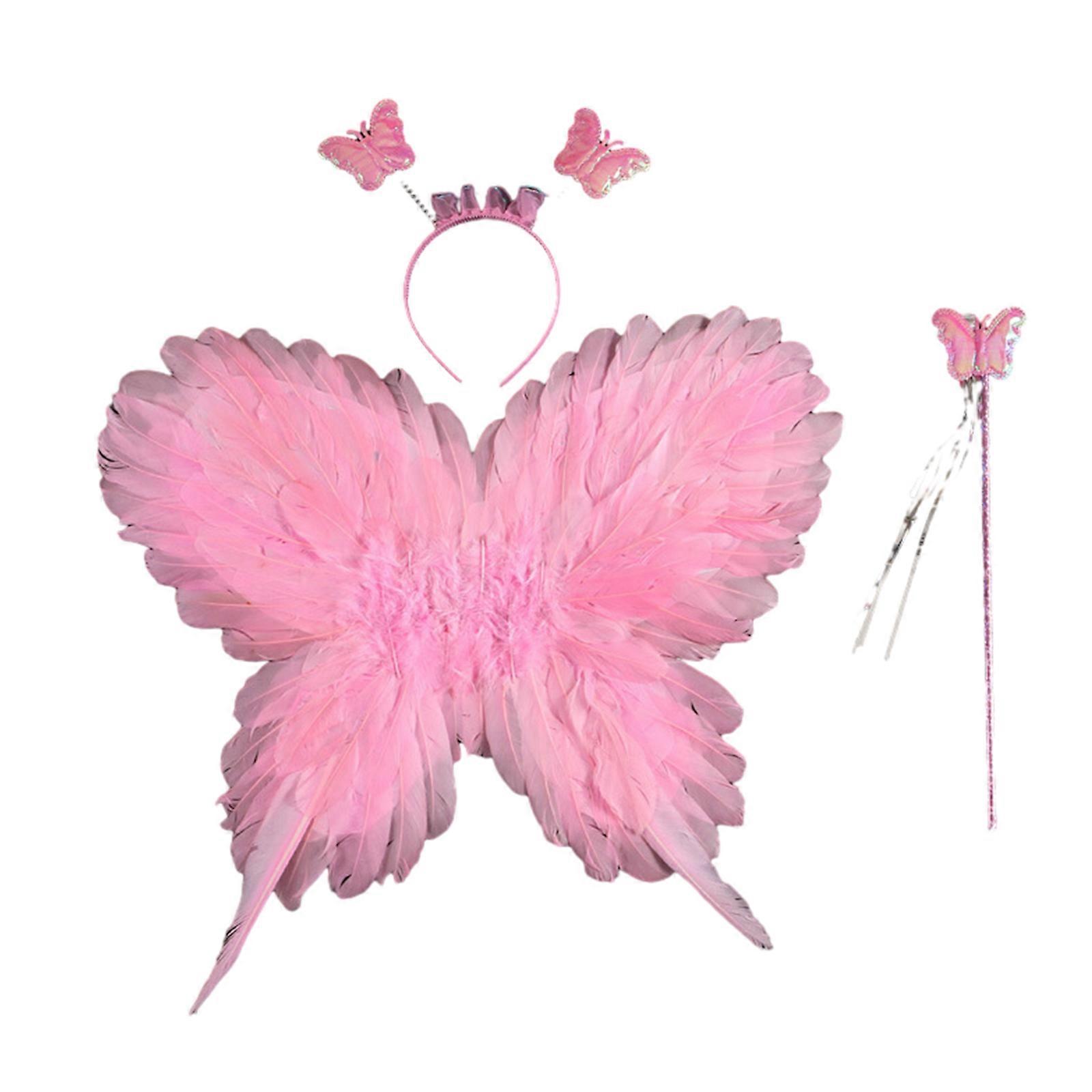 4Pcs Princess Fairy Dress-up Set for Birthday Party Halloween Christmas Girl Age 3-6 with Wing Tutu Skirt Wand Headband