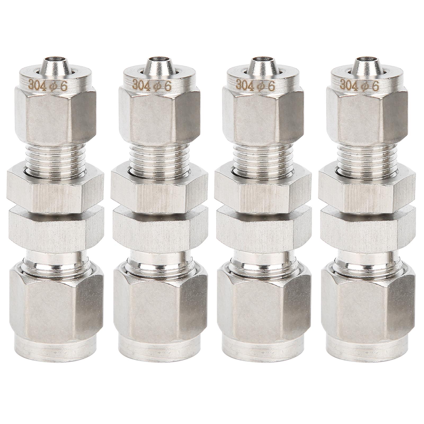 4Pcs Ferrule Compression Fitting 2‑Touch Straight Bulkhead Connector 304 Stainless Steel
