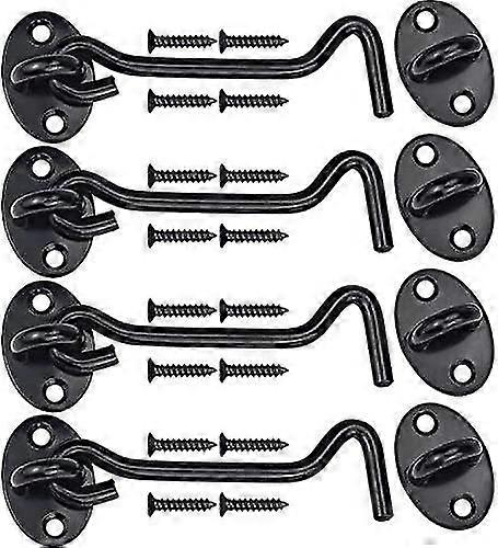 4 Pcs Hook Cabin, Eye Latches And Bolt For Door Locks, Stainless Steel Door Latch With 16 Screws (4 Inch, Black)