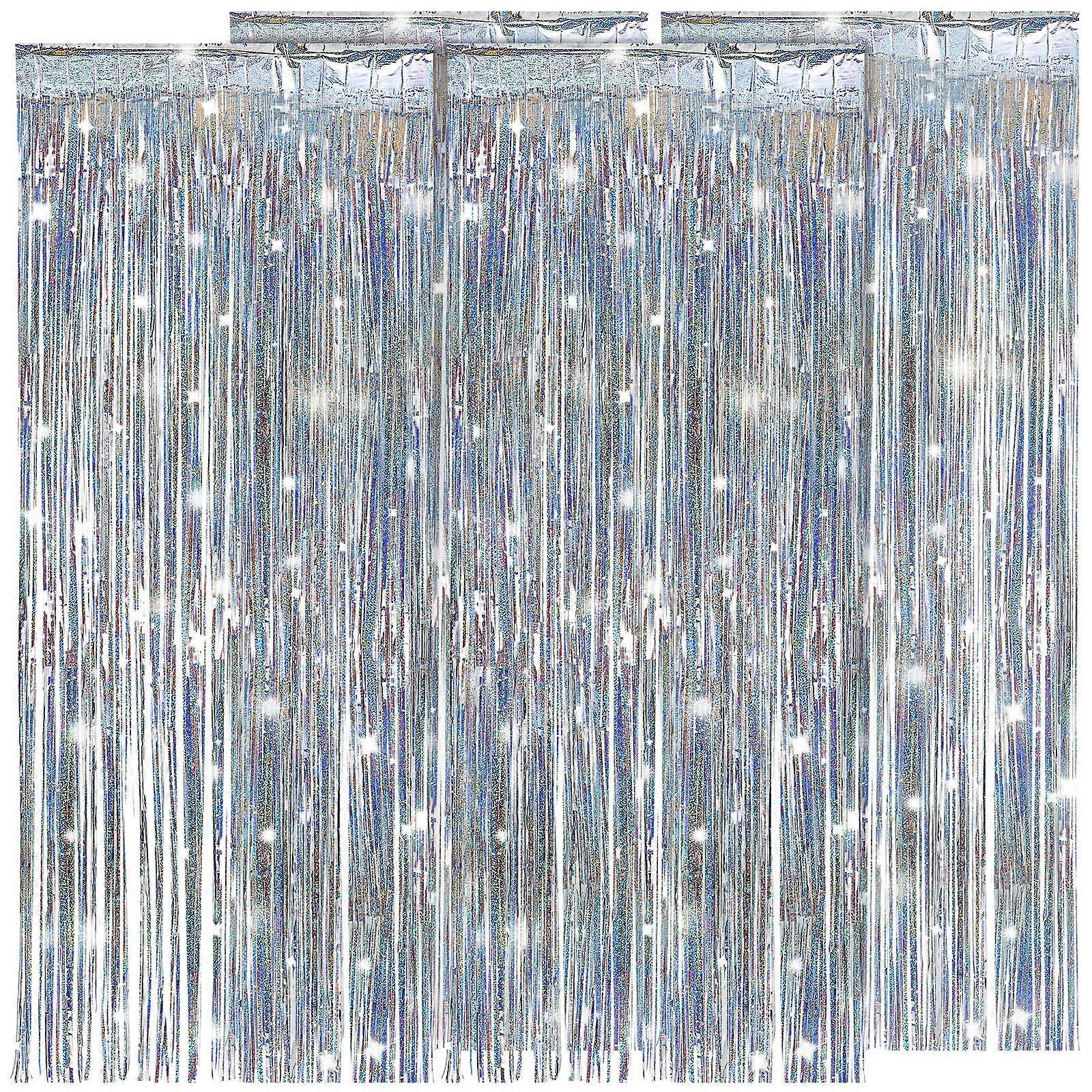 4 Pcs Fringe Backdrops Silver Fringe Party Backdrop Curtains Silver Foil Fringe Curtain Streamers Party Decorations
