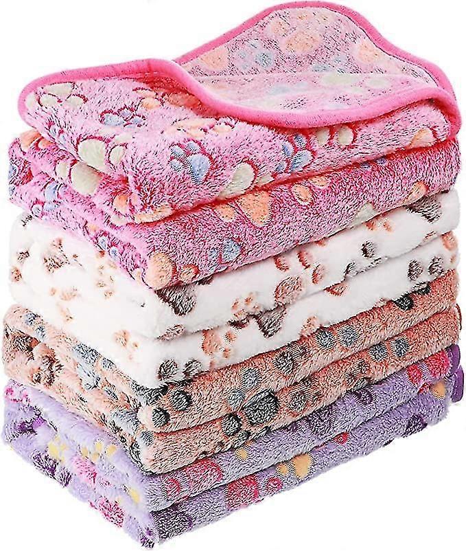 4 Pcs Pet Blanket - Paw Print Fleece Blanket for Small Medium Large Dogs and Cats