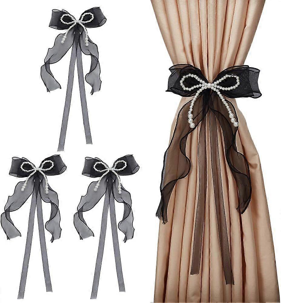 4 pcs Bow Curtain Tiebacks Butterfly Curtain Ties with Pearls Black Bowknot Pearl Curtain