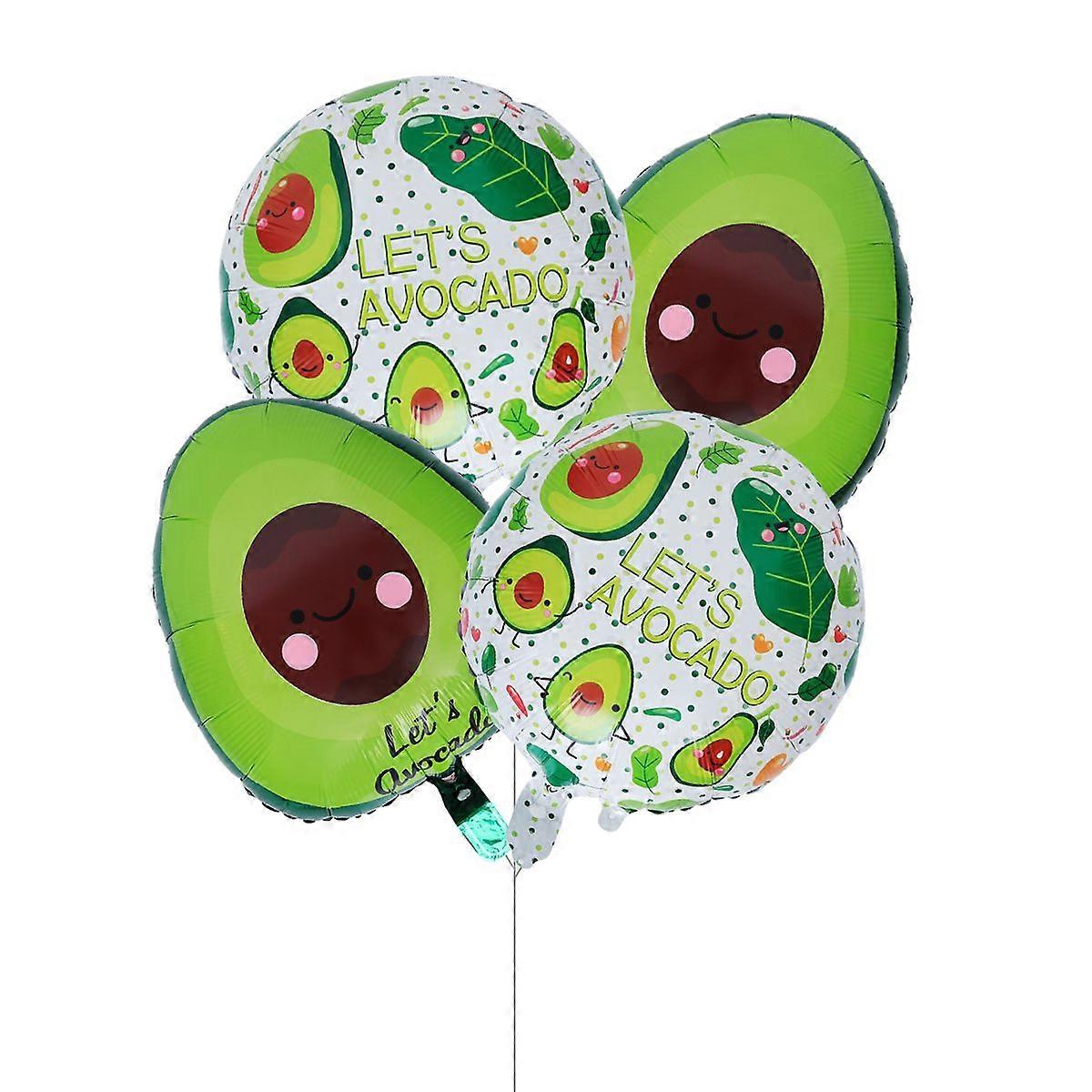 4Pcs Foil Balloons Avocado Pattern Mylar Helium Balloons Birthday Party Decorations (Round*2 and Oval*2)