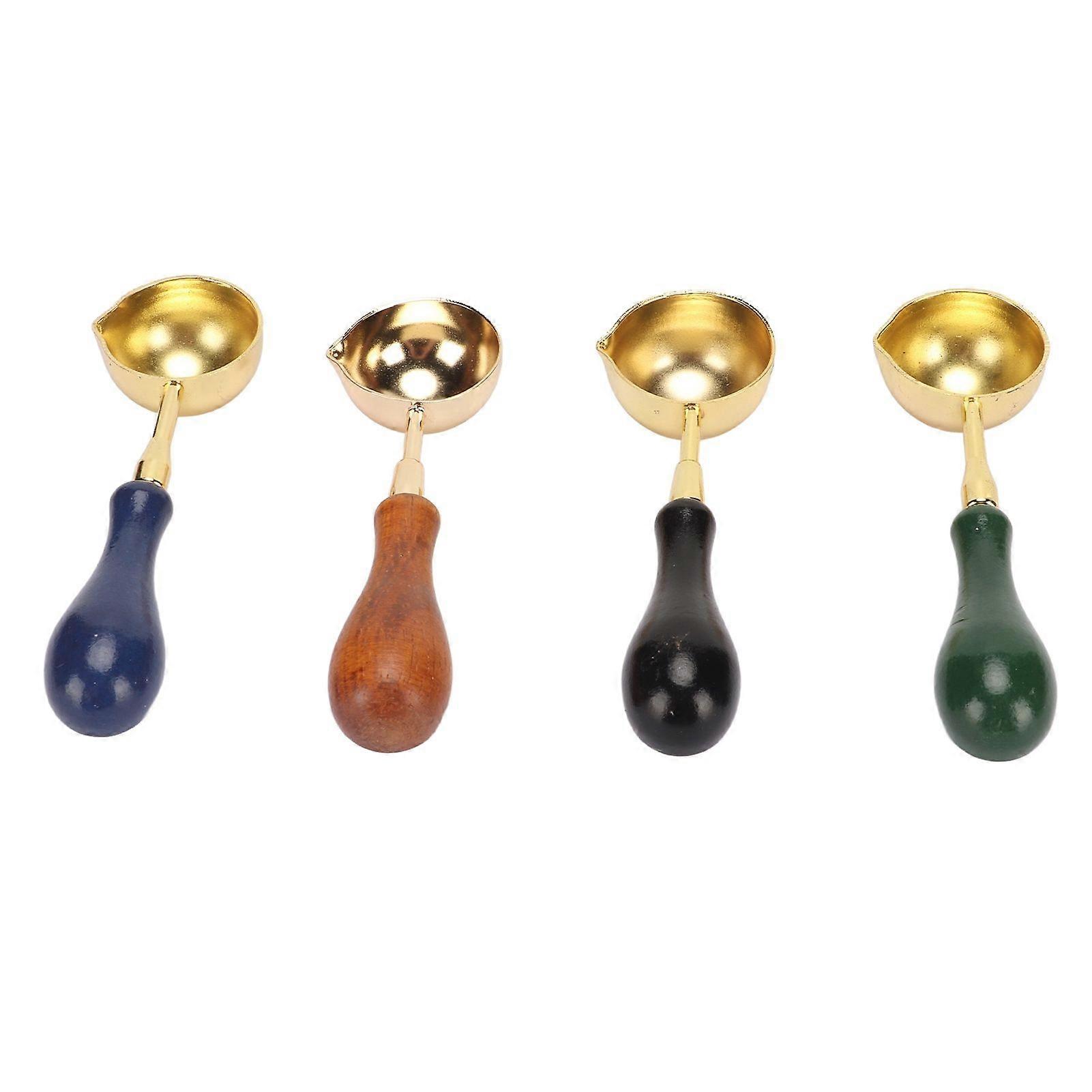 4Pcs Wax Melting Spoon Elegant Wax Sealing Stamp Melting Spoon with Wooden Handle for DIY Crafts Gifts Packaging