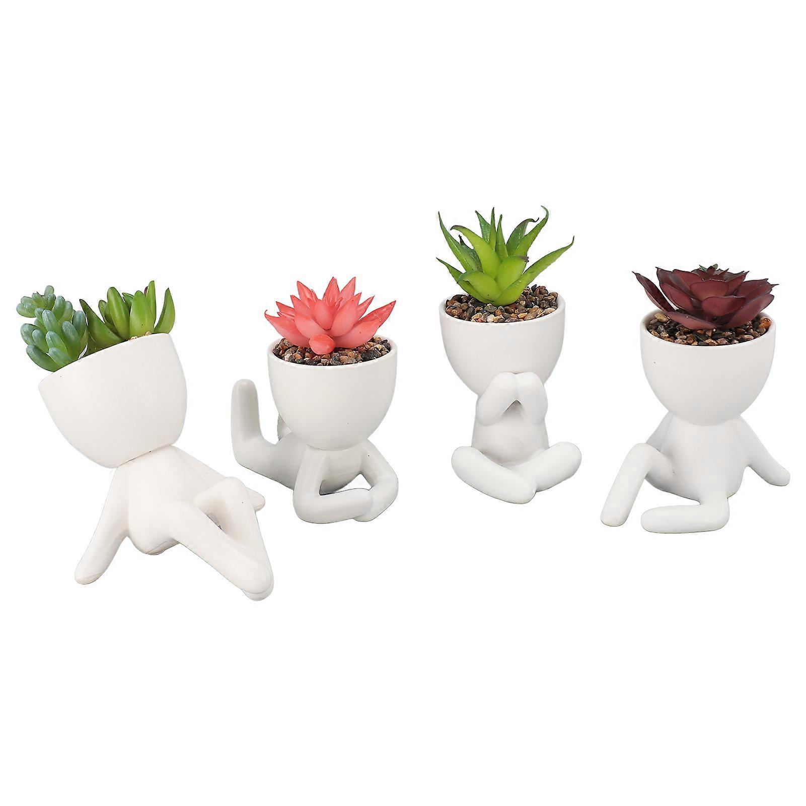 4Pcs Artificial Succulent Plant Cute Ceramic Faux Succulent Flower Pot Decoration Set for Office Living Room Table Desk