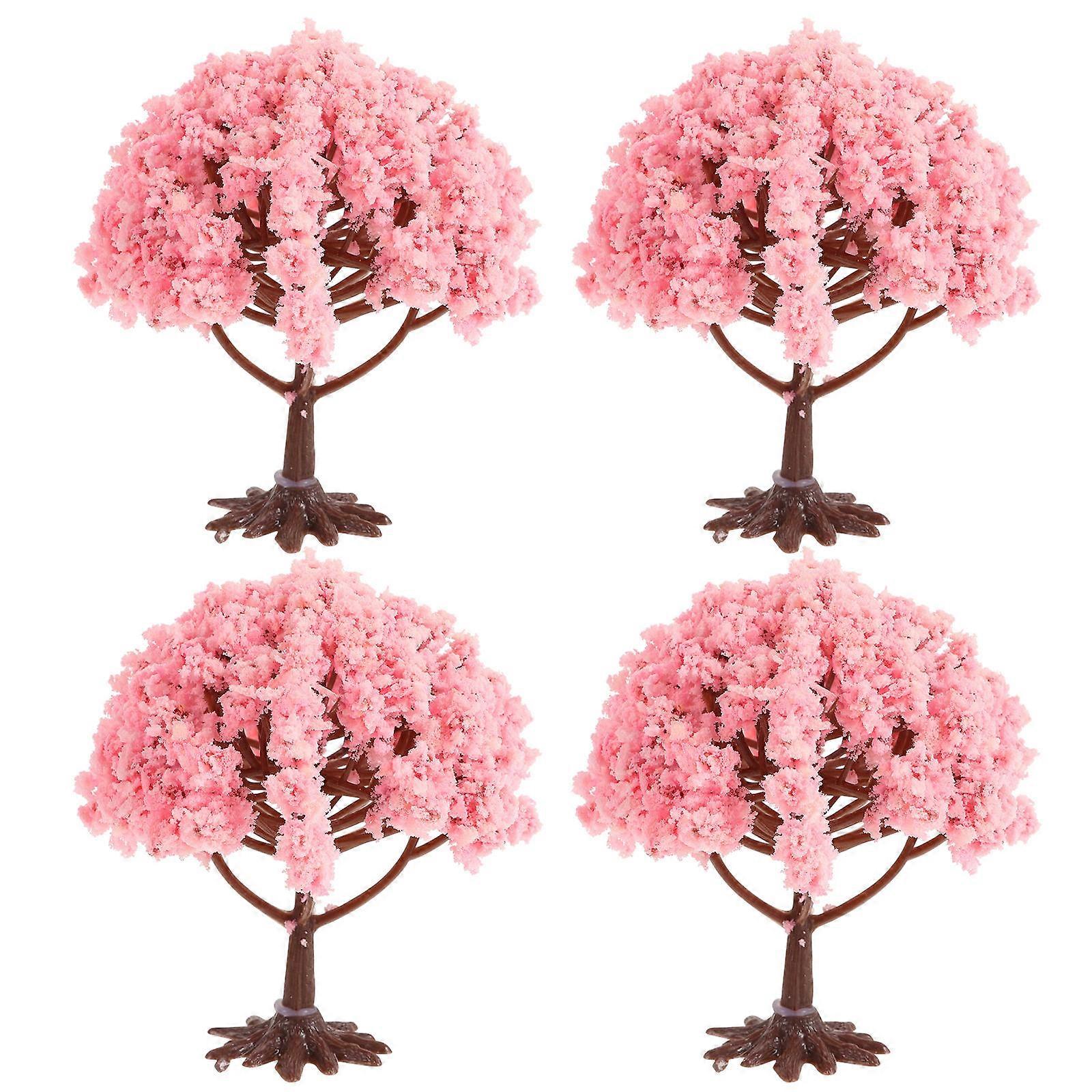 4pcs Artificial Cherry Blossom Trees Miniature Decor for Dollhouse Table Indoor Garden Terrarium Scenery Arrangement