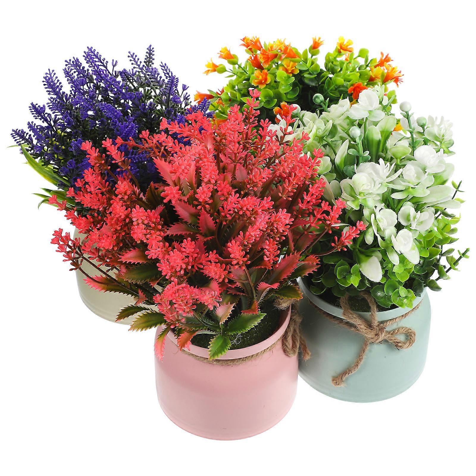 4pcs Artificial Bonsai Potted Plants, Realistic Faux Flowers for Home, Office & Garden Decor, Vivid Red Purple Green Indoor Plants