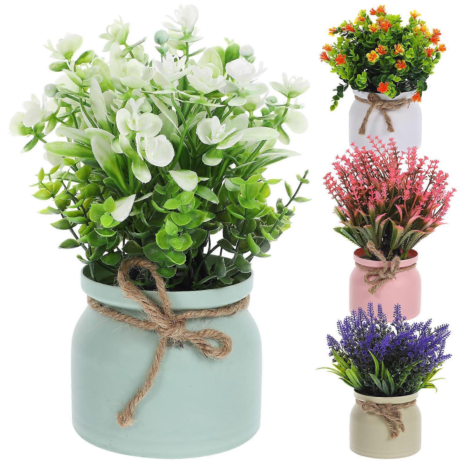 4pcs Artificial Potted Plants Indoor Decorative Faux Flower Bonsai with Vibrant Room Office Kitchen Shelf Display