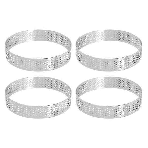 4 pcs Circle Shaped Porous Tart Molds Bottom Tower Pie Cake Mold Baking Heat Resistant Perforated Cake Mold silver