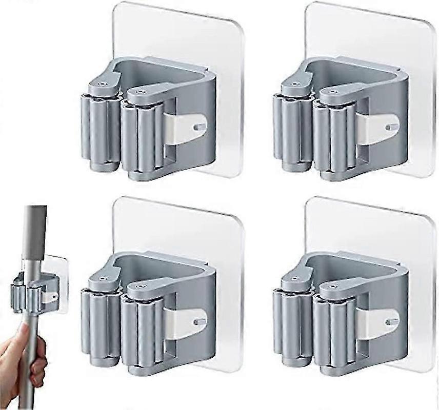 4Pcs Wall Mounted Mop and Broom Holder, No Drill Organizer Clips for Mop/Broom, White Color
