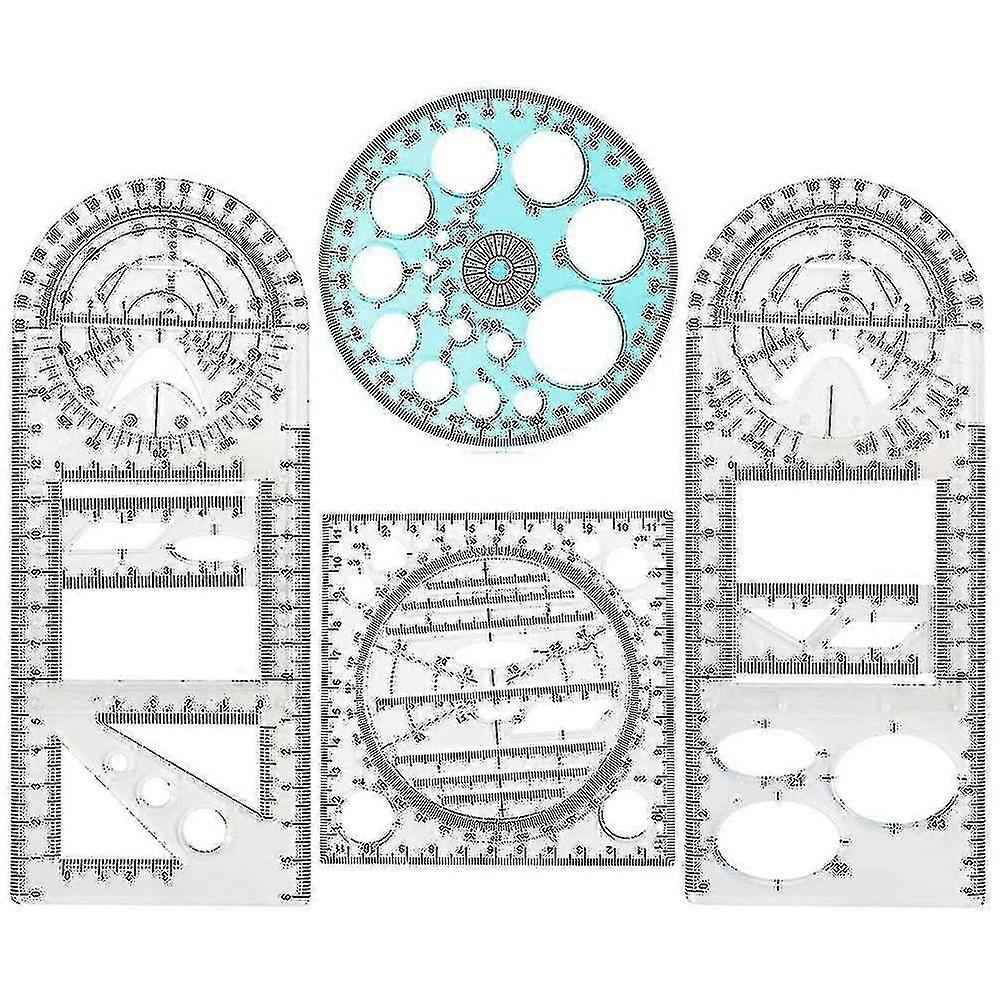 4 Pcs Multifunctional Geometric Ruler Drawing Tools Plastic Ruler Set Mathematics Measuring Circle